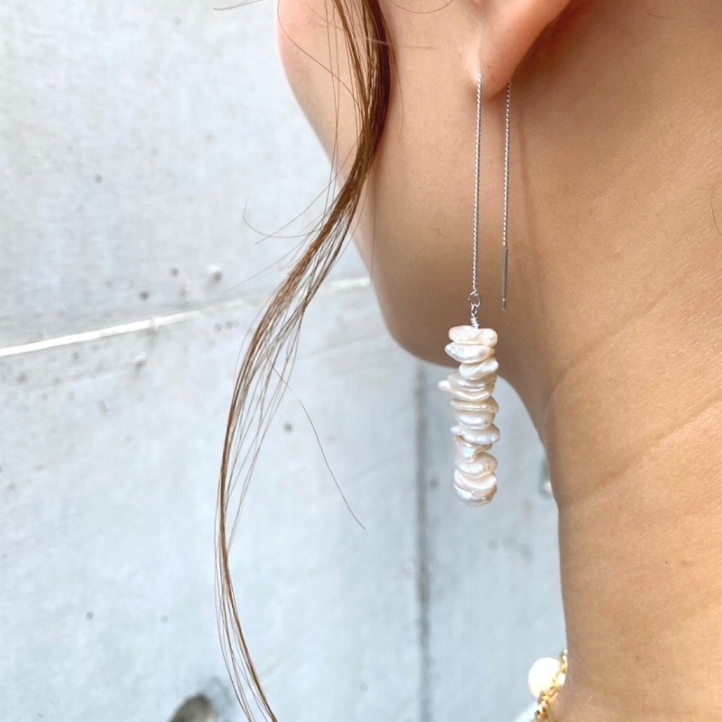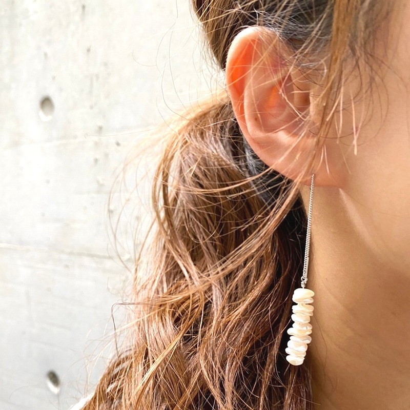 形も色も違う不揃いの淡水パールをあえて使用しており、淡水パールならではの良さを楽しんでいただけるアイテムです。