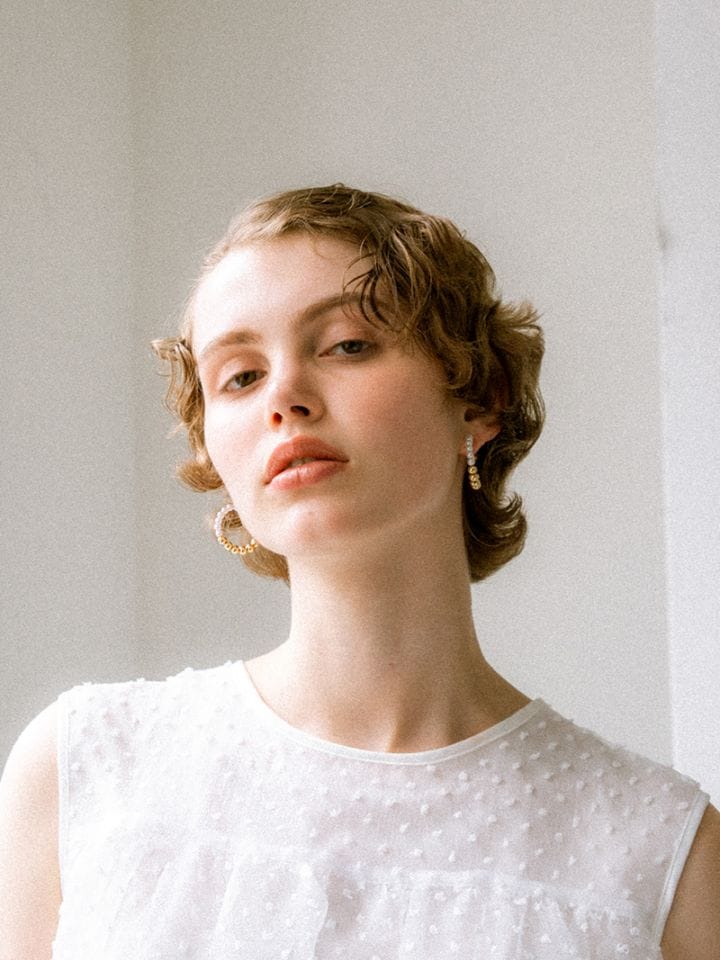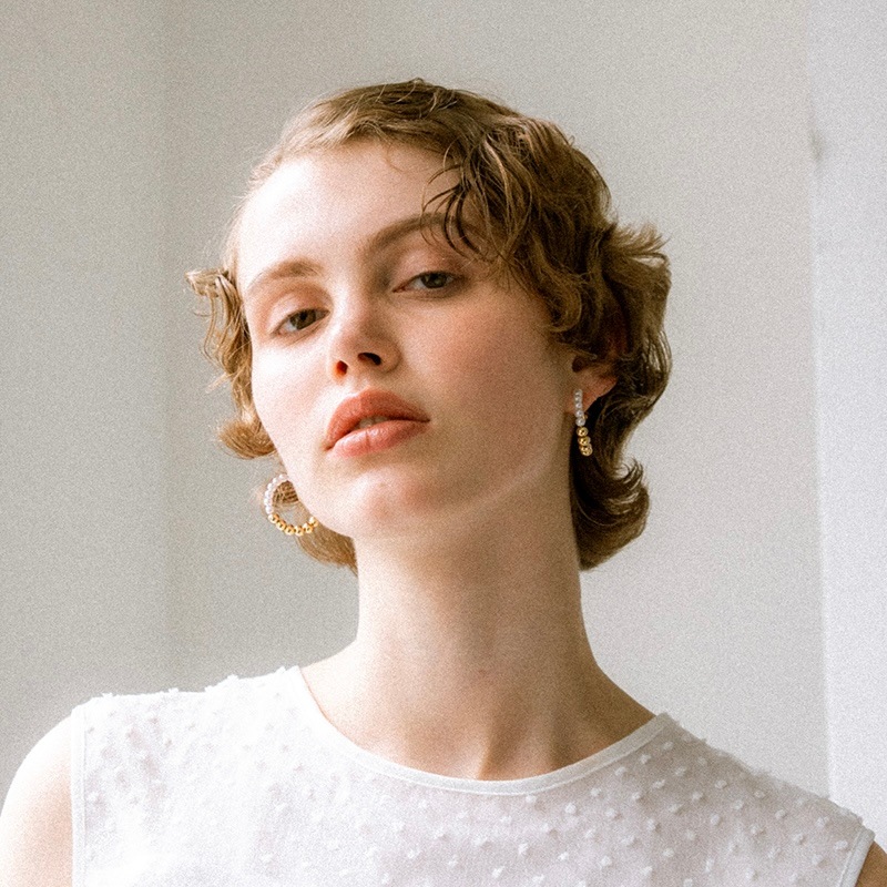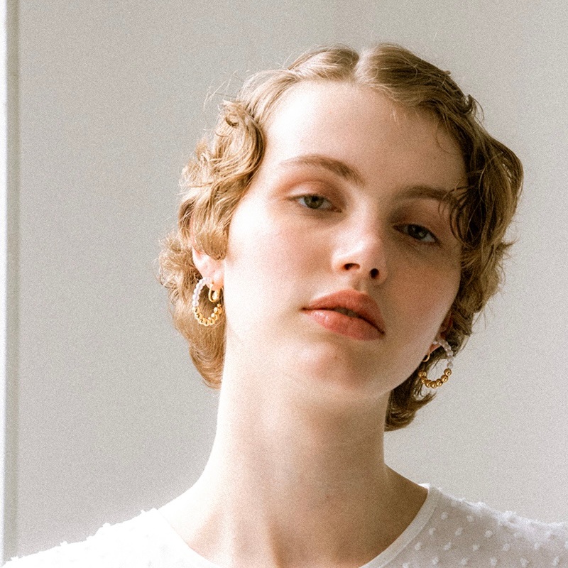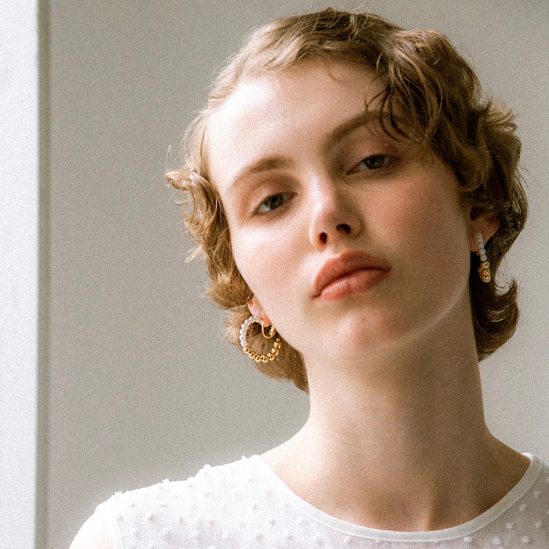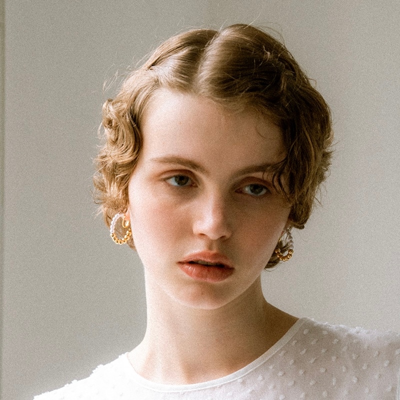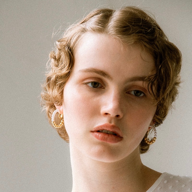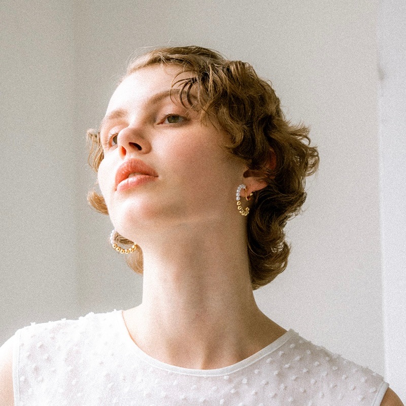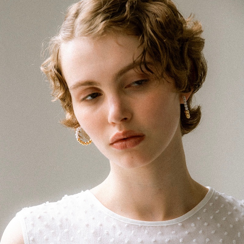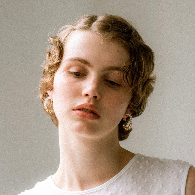 パールとメタルのコンビネーションがカジュアルにも綺麗目にもモードにもお召しいただけるイヤリングです。