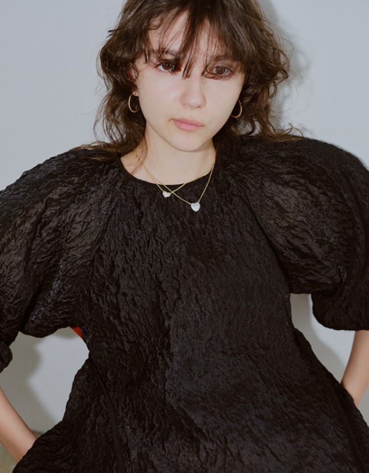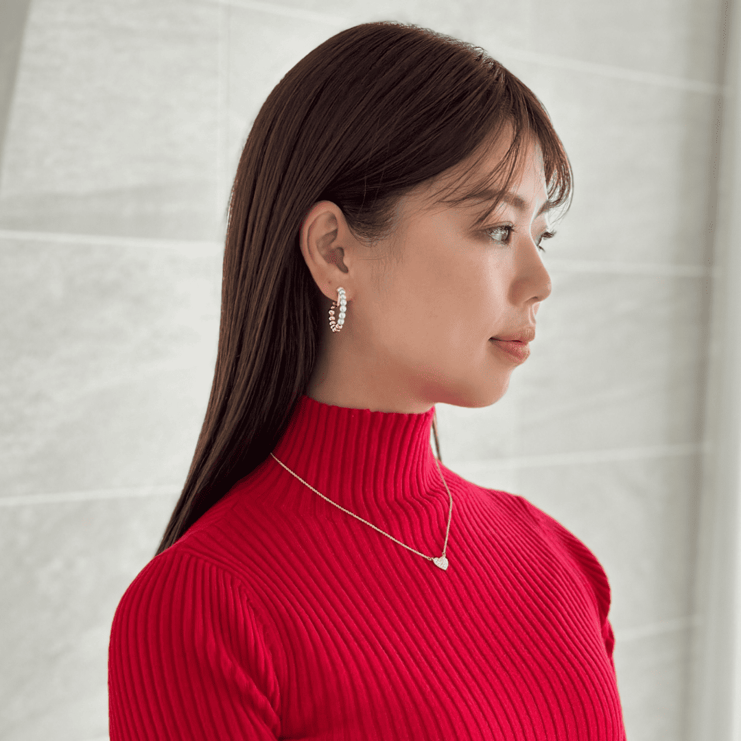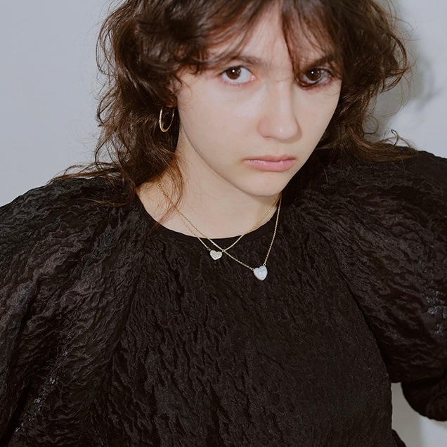 少しぷっくりしたフォルムが愛らしい、ストーンの輝きが女性らしいネックレスです。