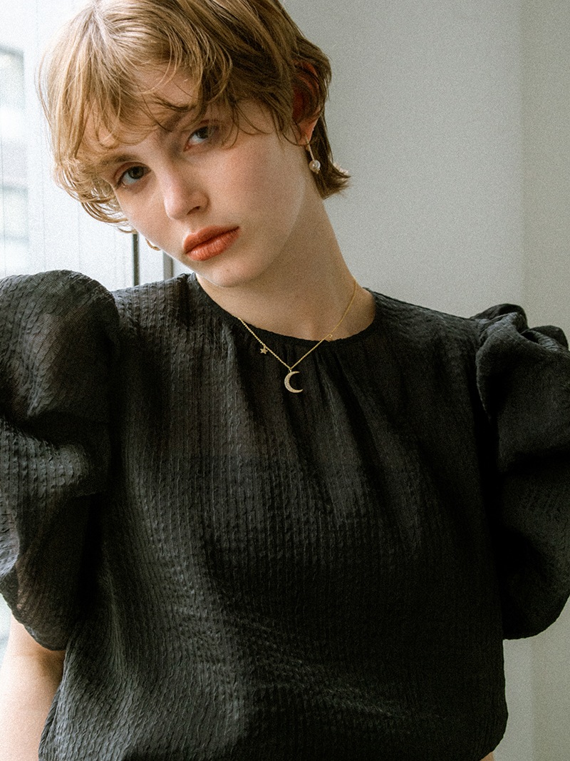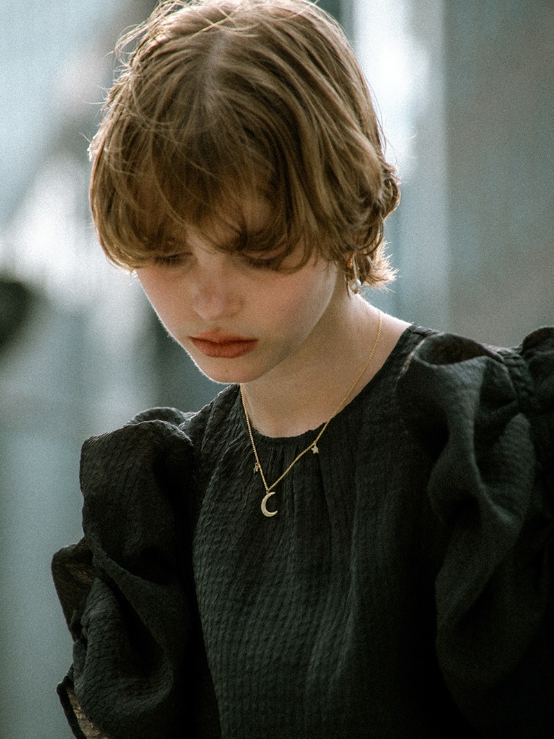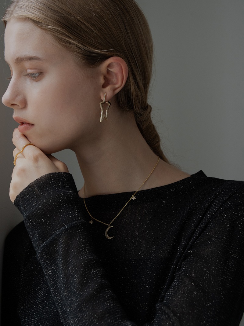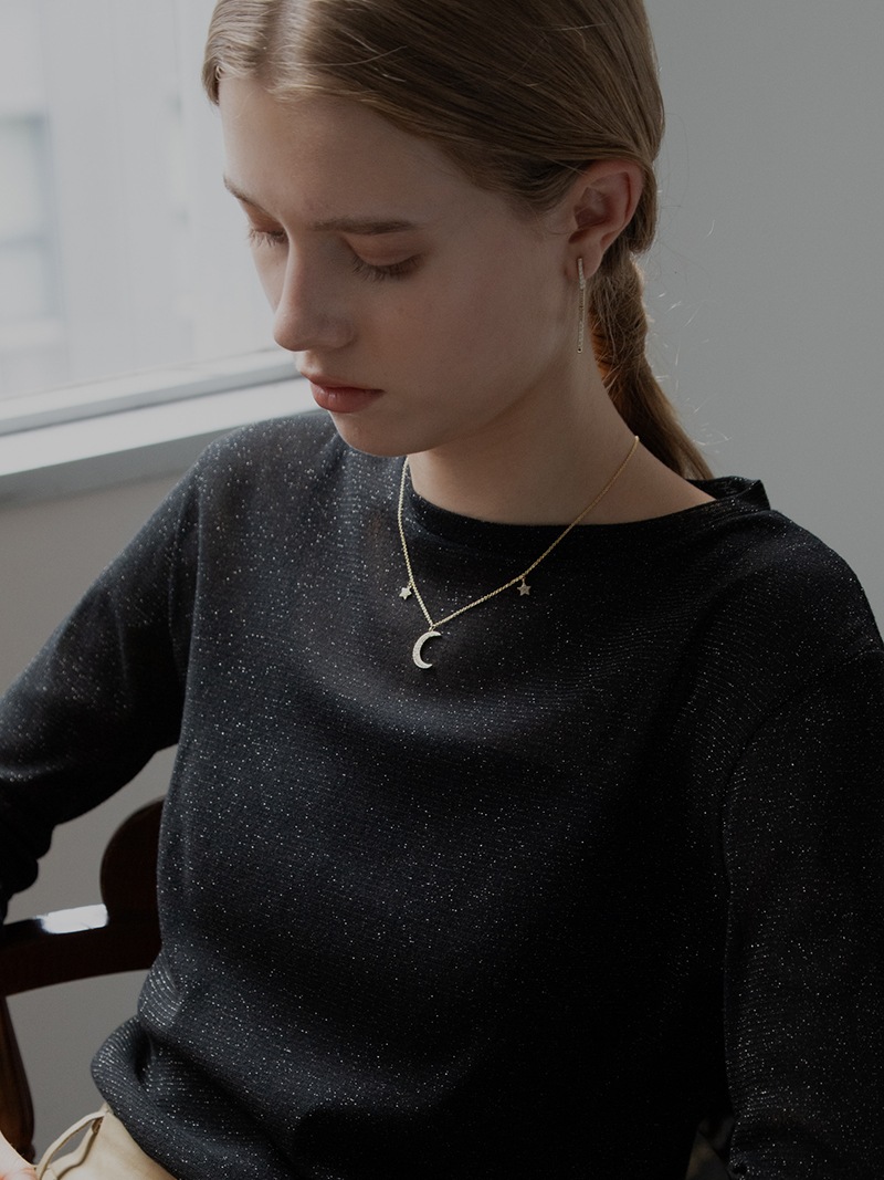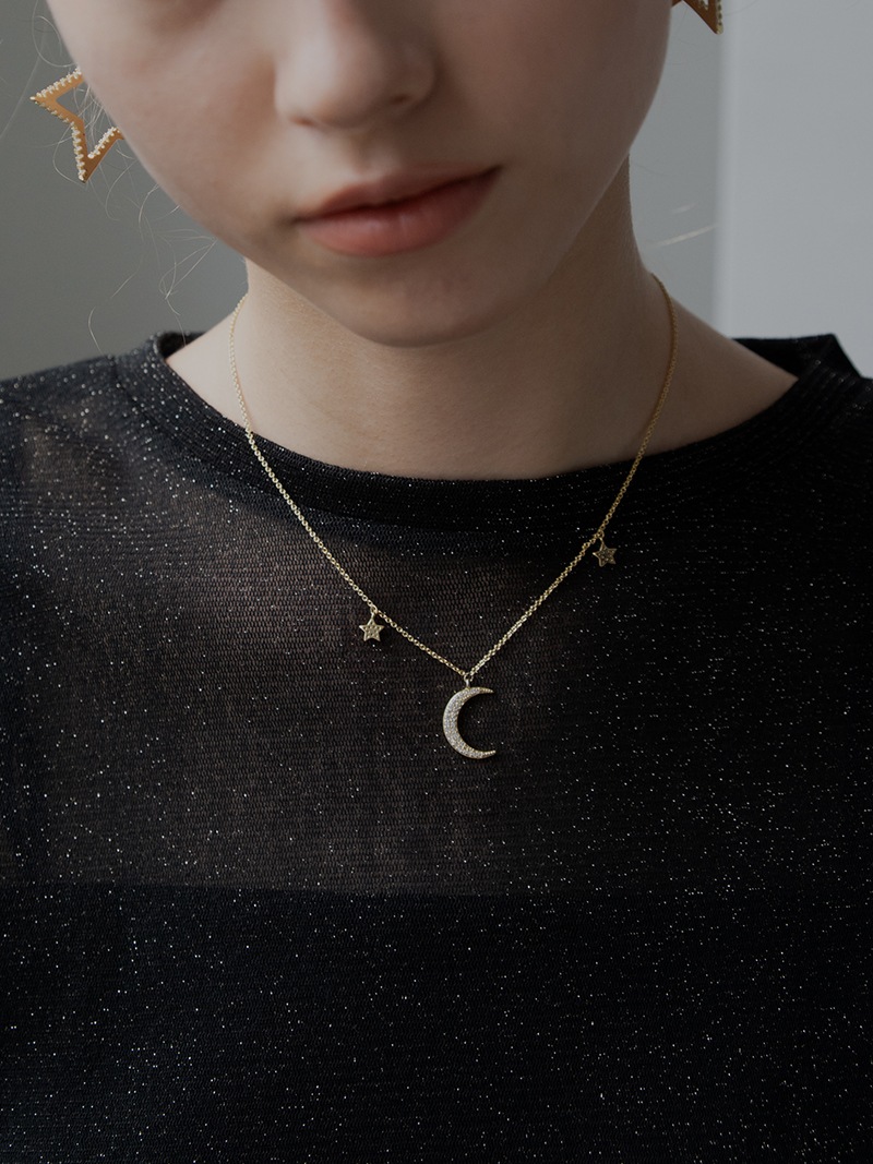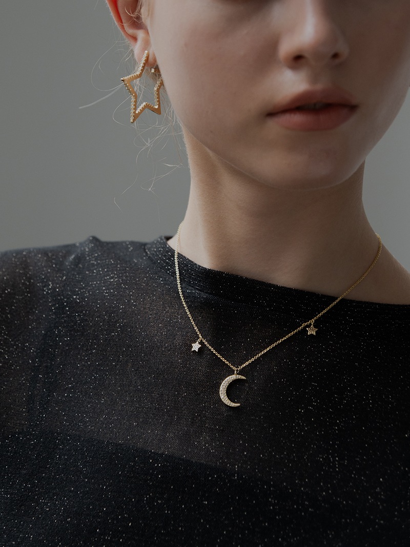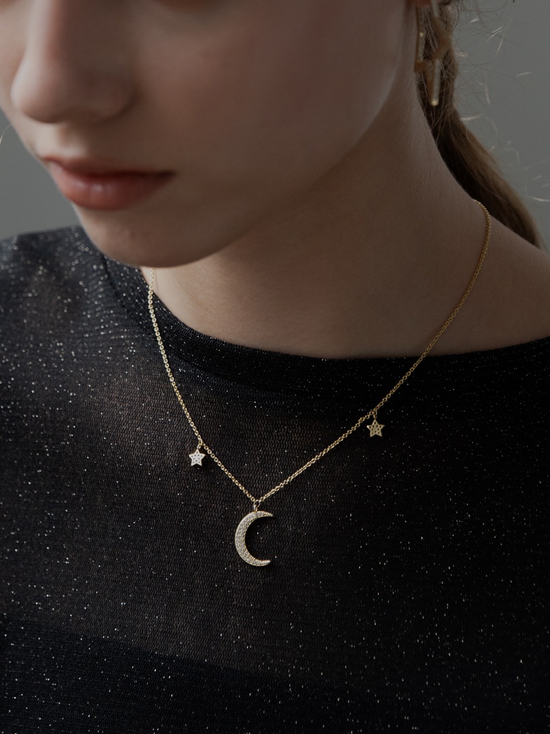 夜空をイメージした、月の周りに星が煌めくネックレスです。
