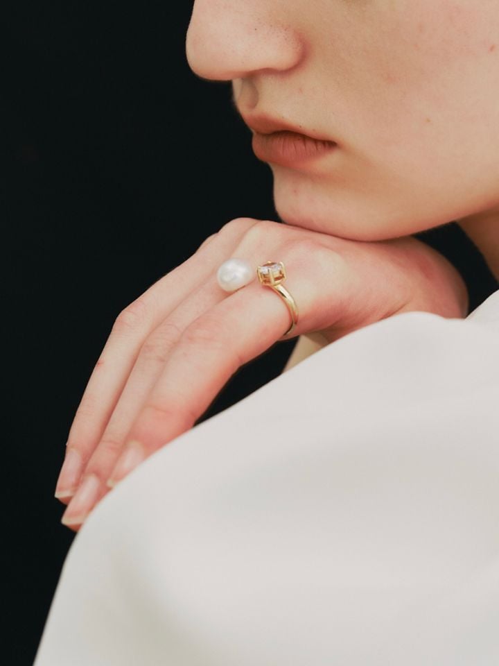 淡水パールとストーンをあしらった、それぞれのコンビネーショをお楽しみいただけるリングです。