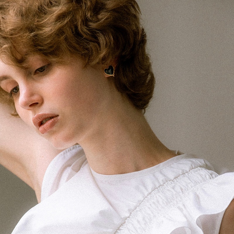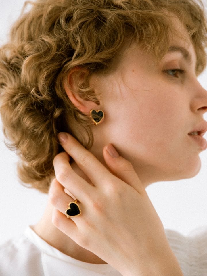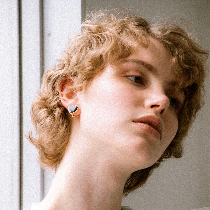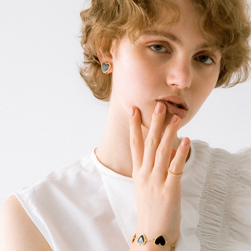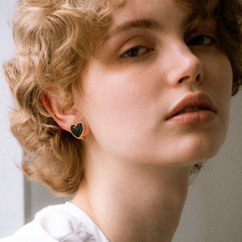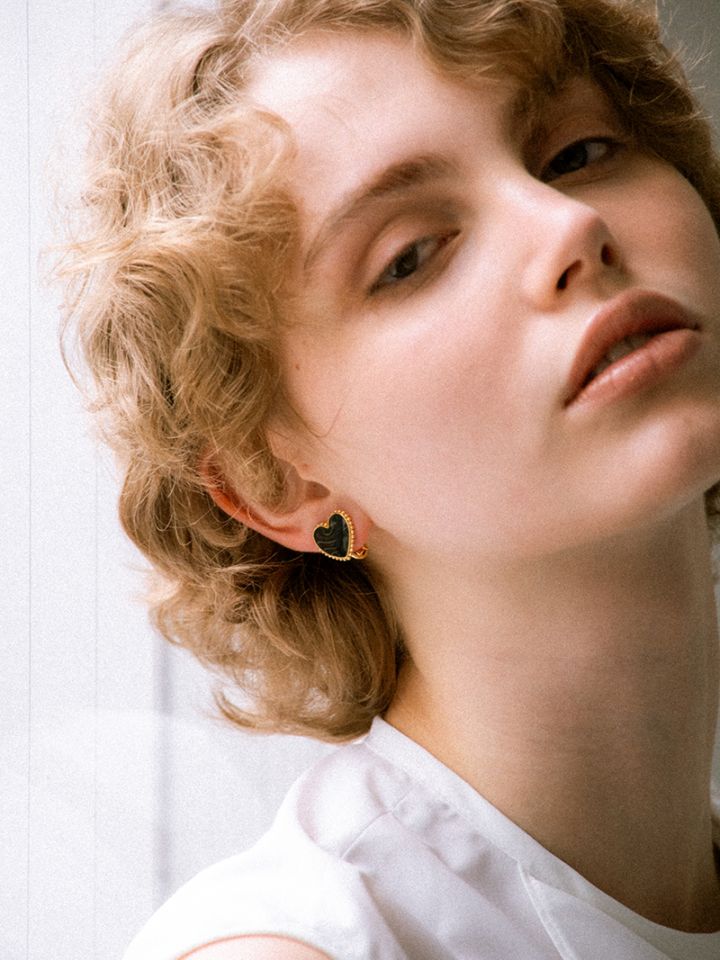 甘くならずに大人がつけるブラックハートに仕上げることで、コーディネートが引き締まりポイントになるイヤリングです。
