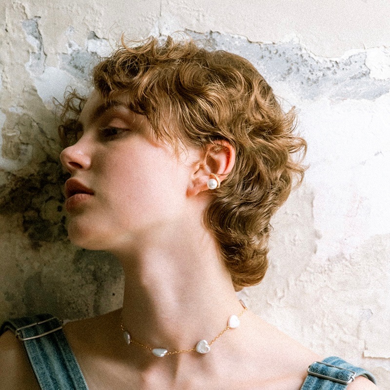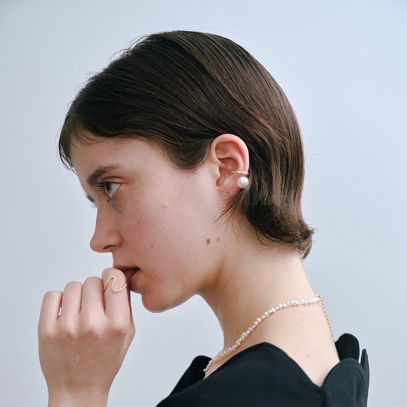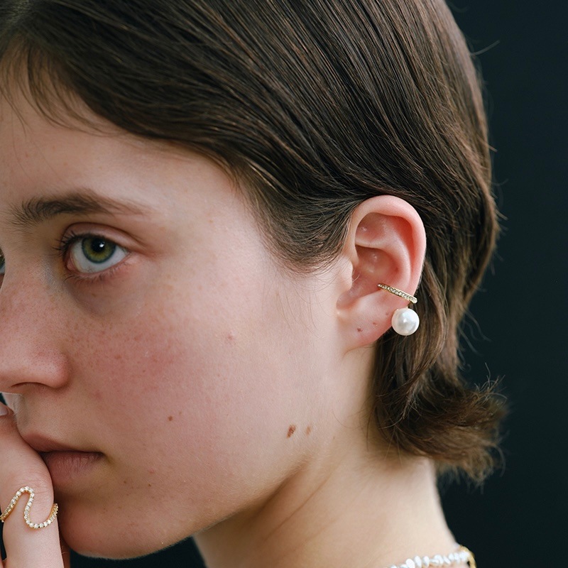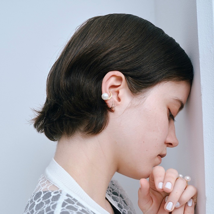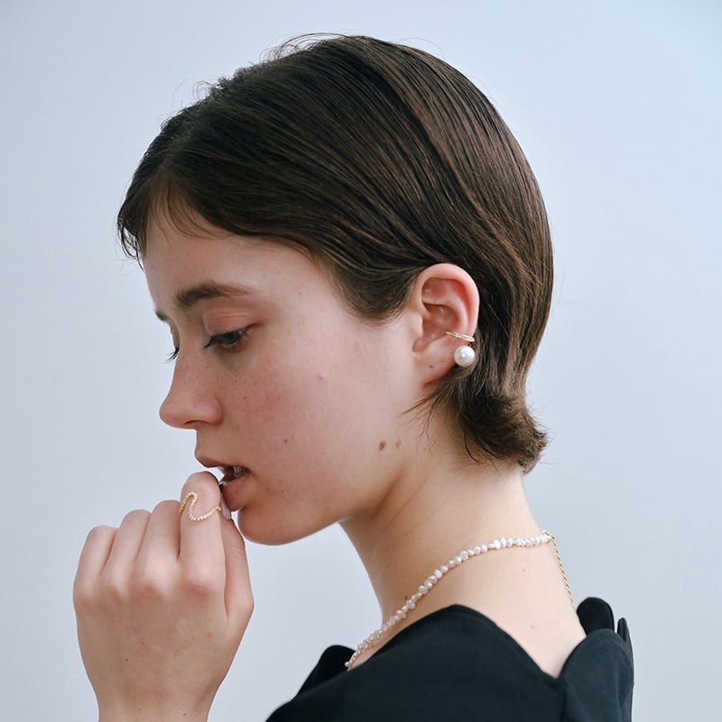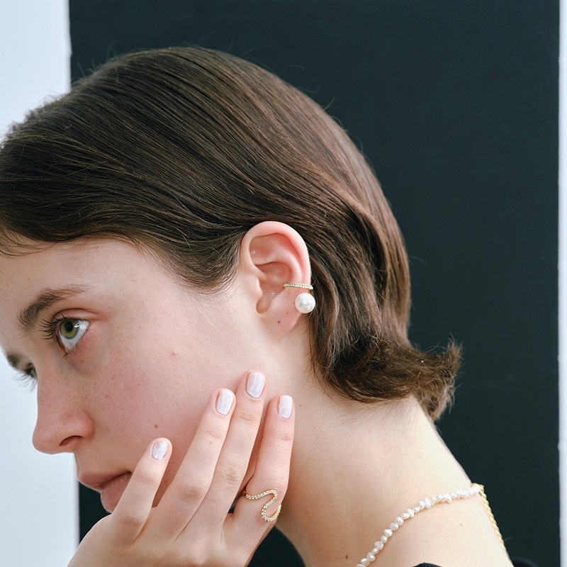 着用することでパールが立体的に見える華やかなイヤーカフです。