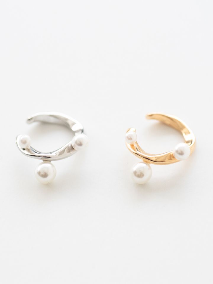 ウェーブをイメージしたようなニュアンス線にパールをあしらったイヤーカフです。