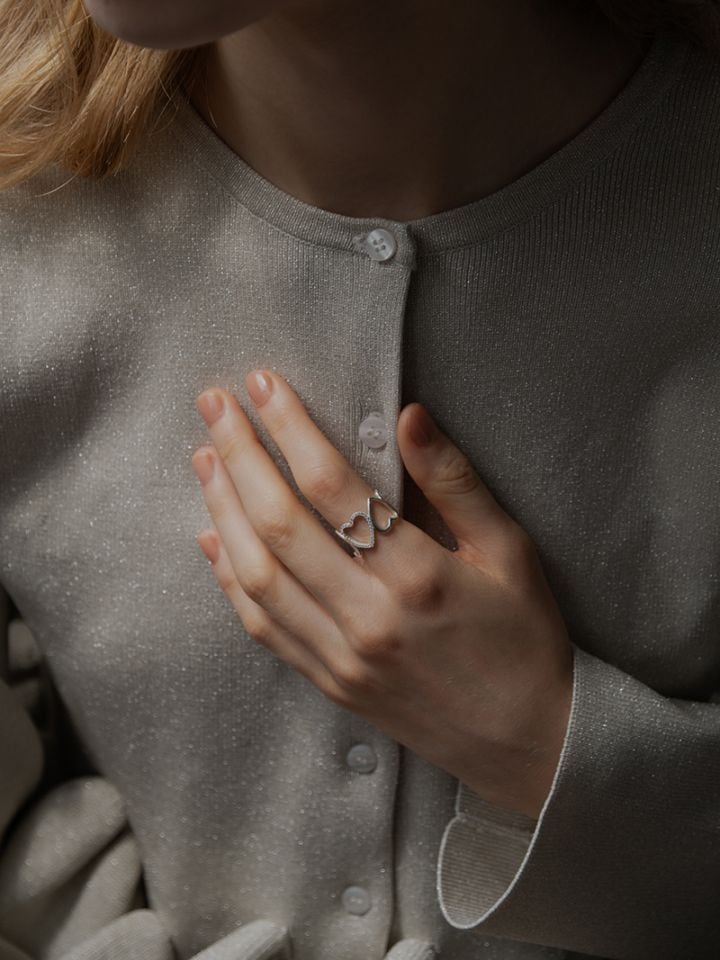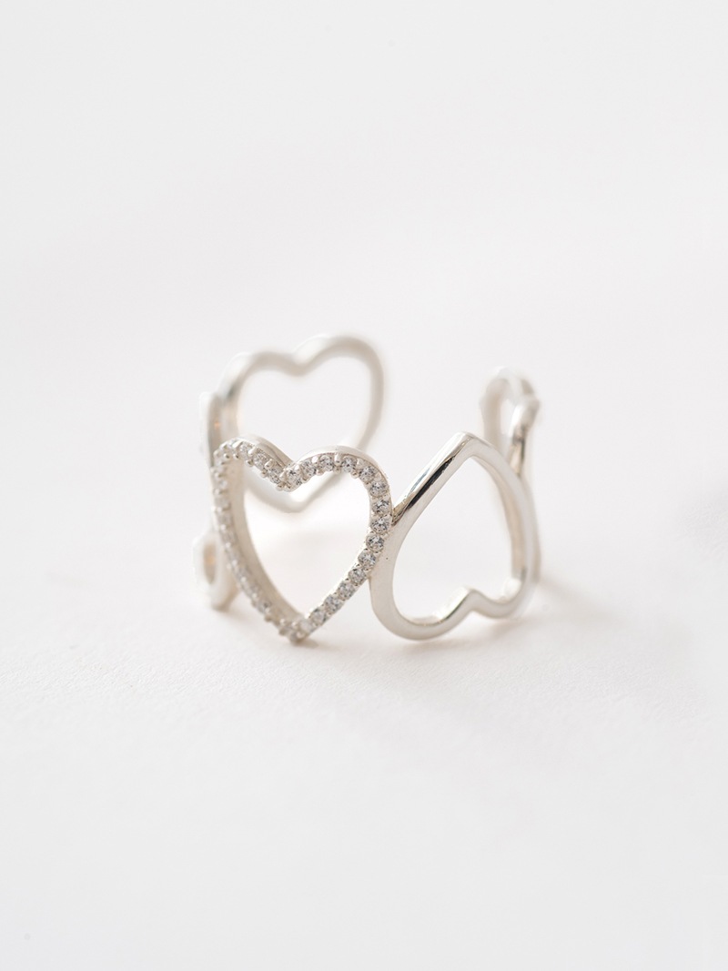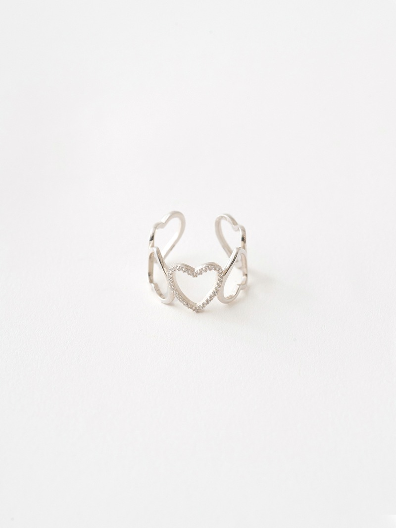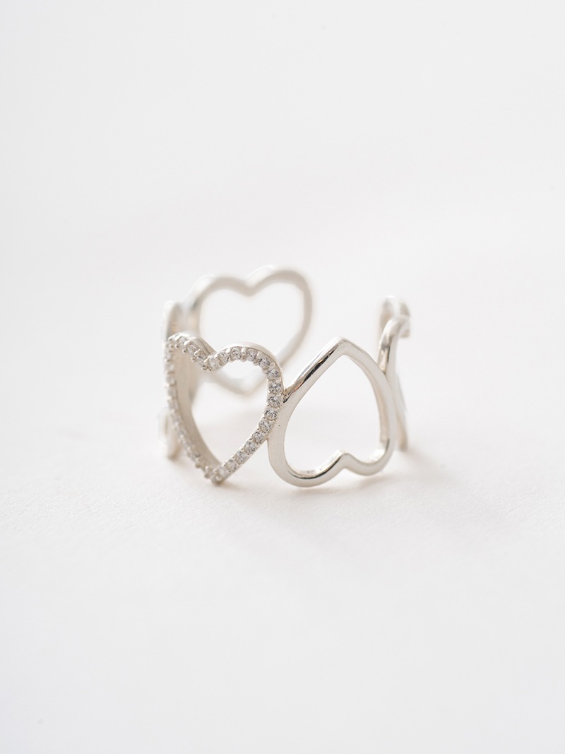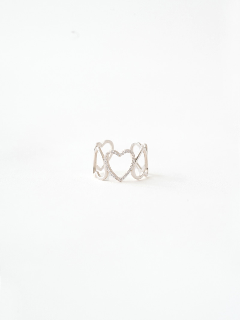 ハートを5連並べ真ん中のハートのみにストーンを施した、ワイドハートが大胆なリングです。