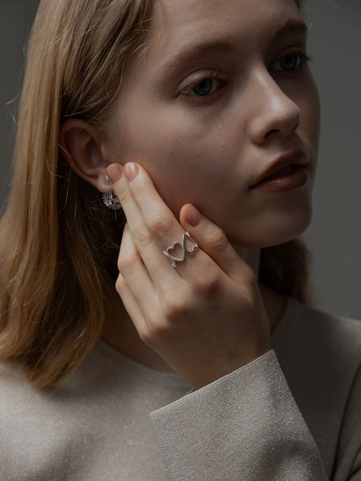 silver925を使用しスイートな中にクールな印象もあるハートリングにしあげました。