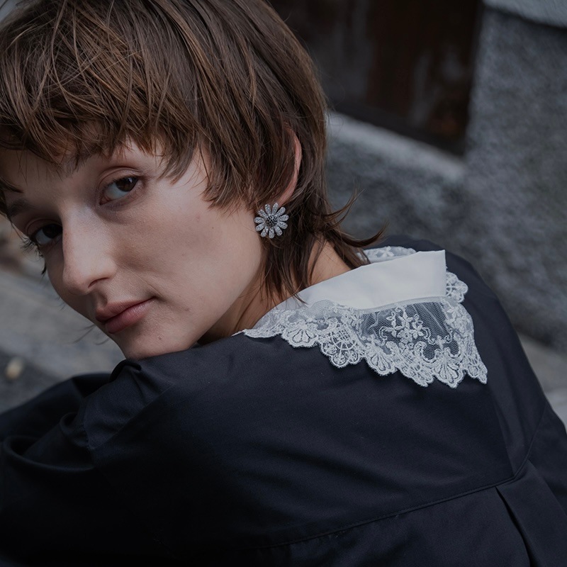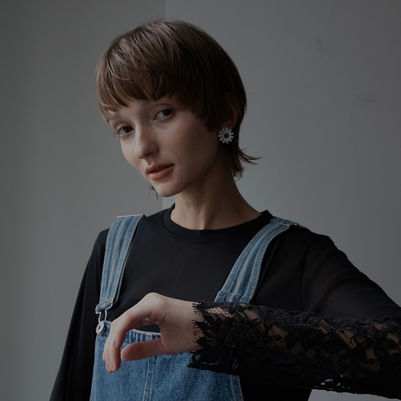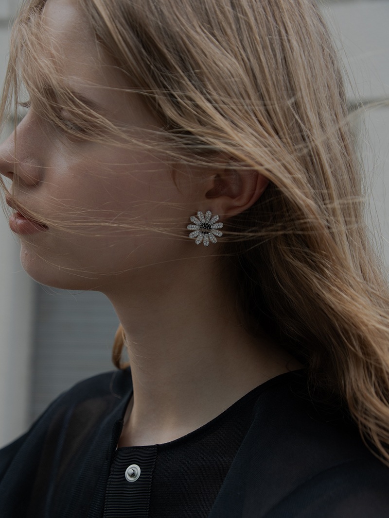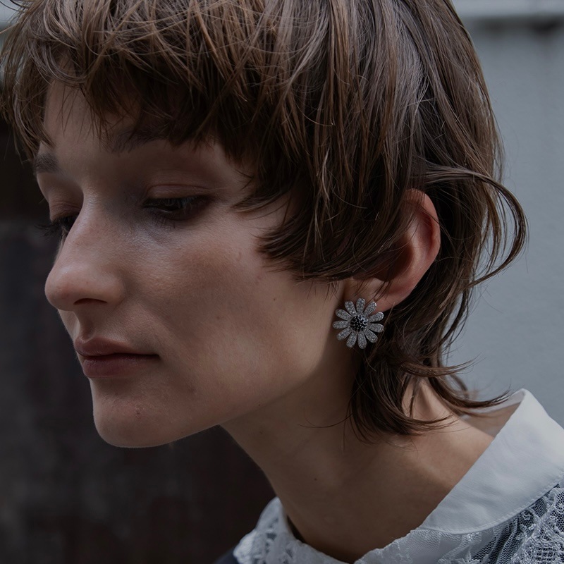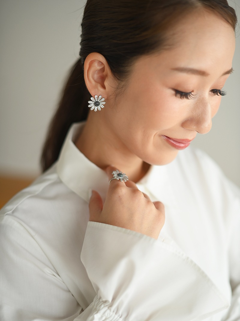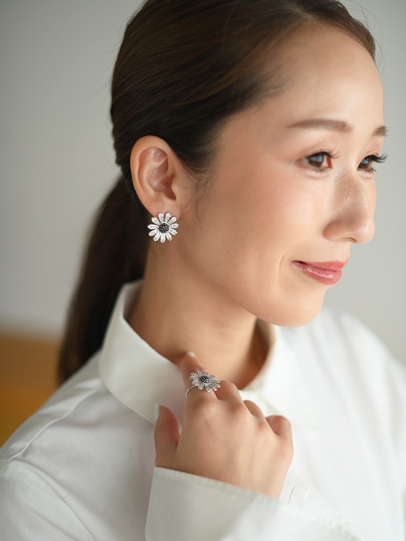 中央のにブラックカラーの石を使用し、モチーフ全体が甘くならず、コーディネートのアクセントになるように仕上げました。