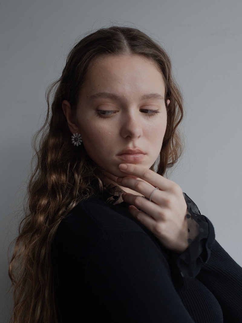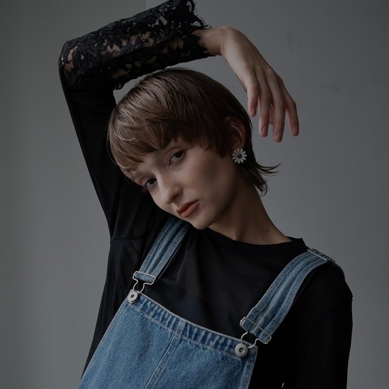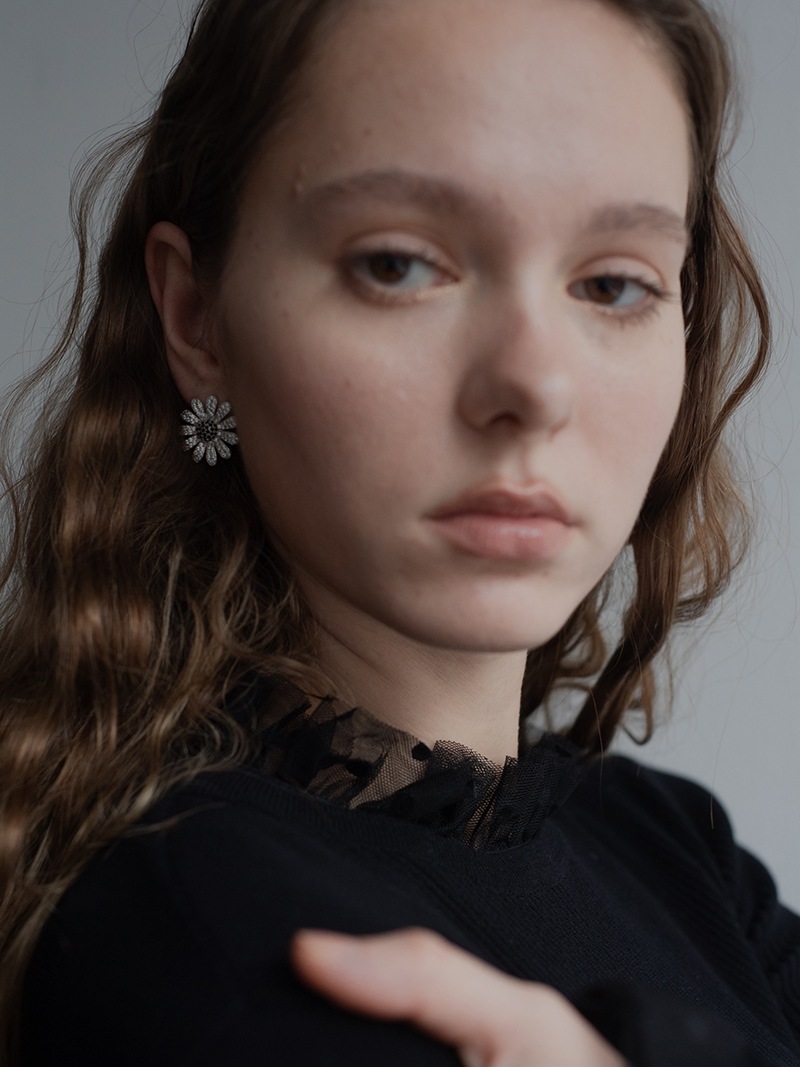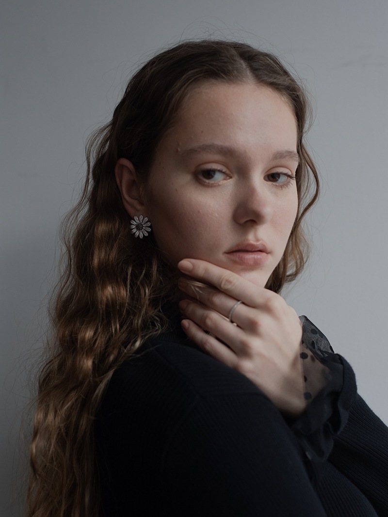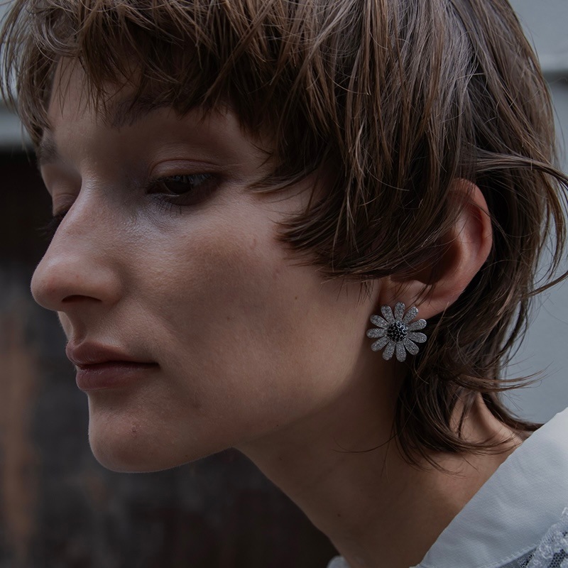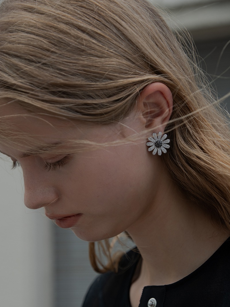 中央のにブラックカラーの石を使用し、モチーフ全体が甘くならず、コーディネートのアクセントになるように仕上げました。