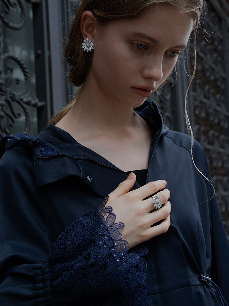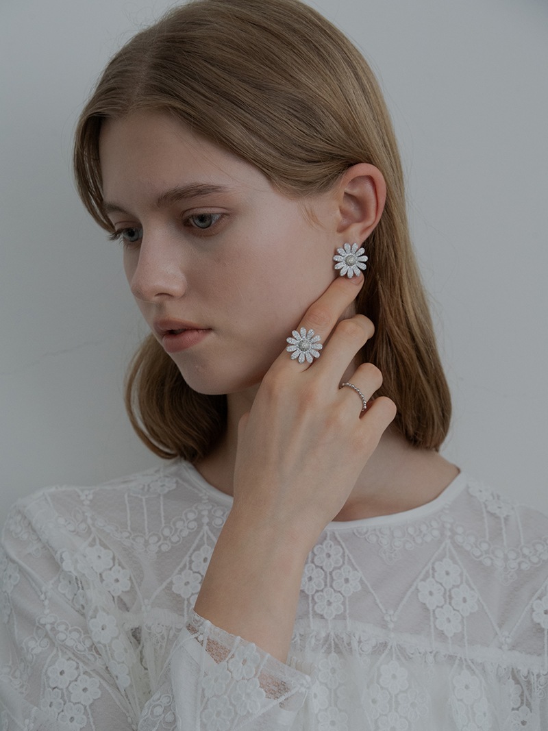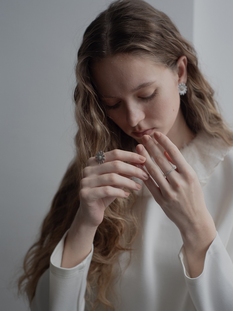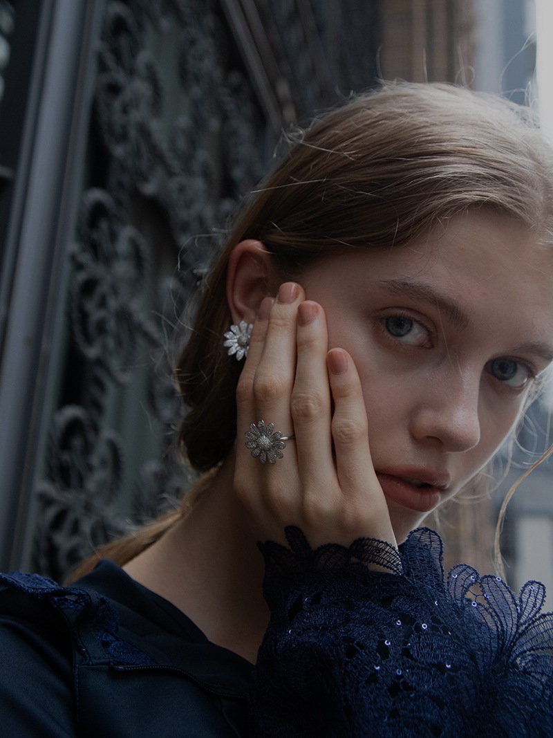 中央のカラーはほんのりイエローな石を使用し、綺麗目で大人がつけるどのようなコーディネートにも馴染むように仕上げました。