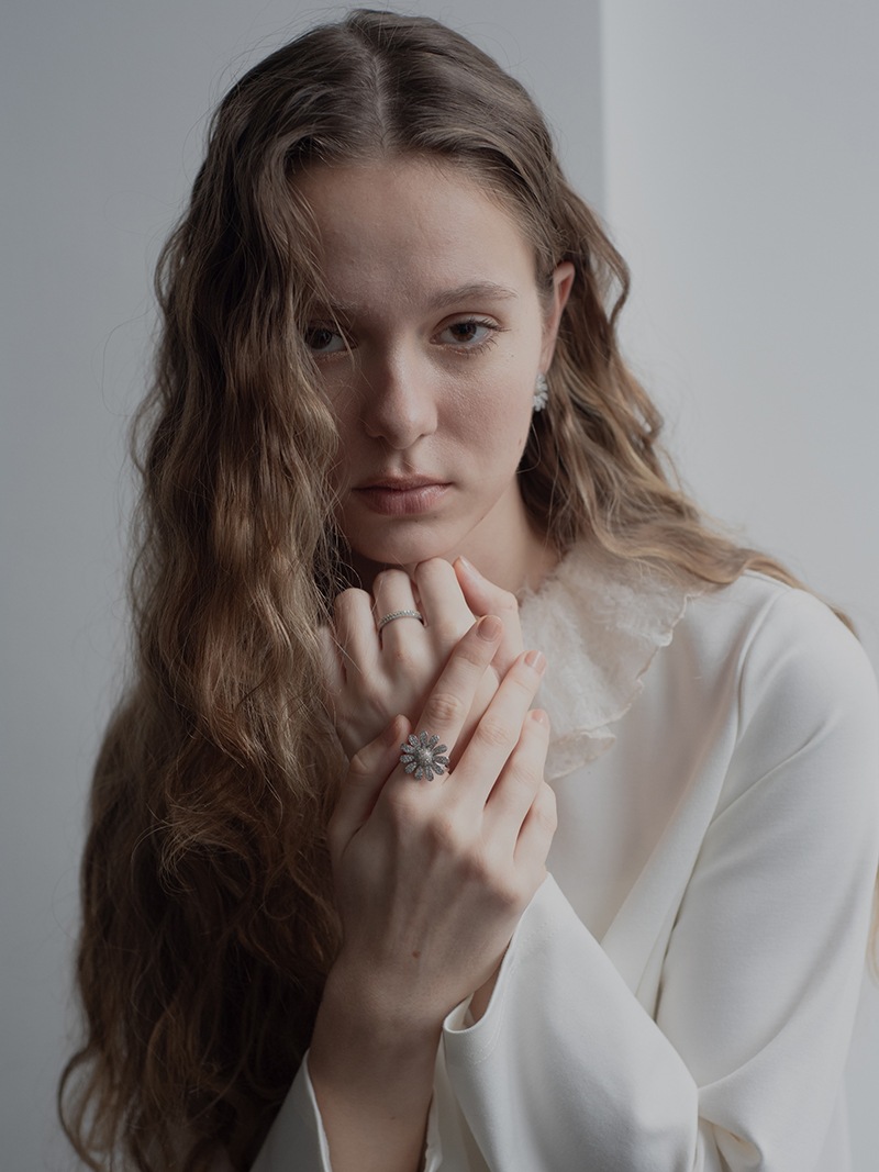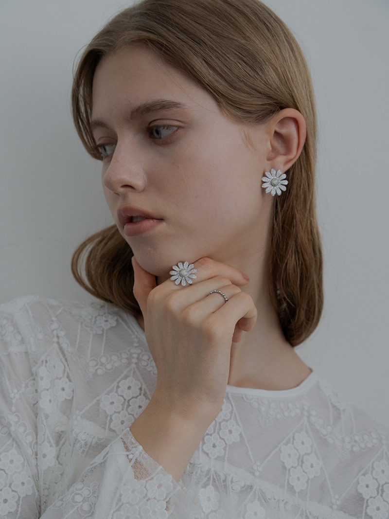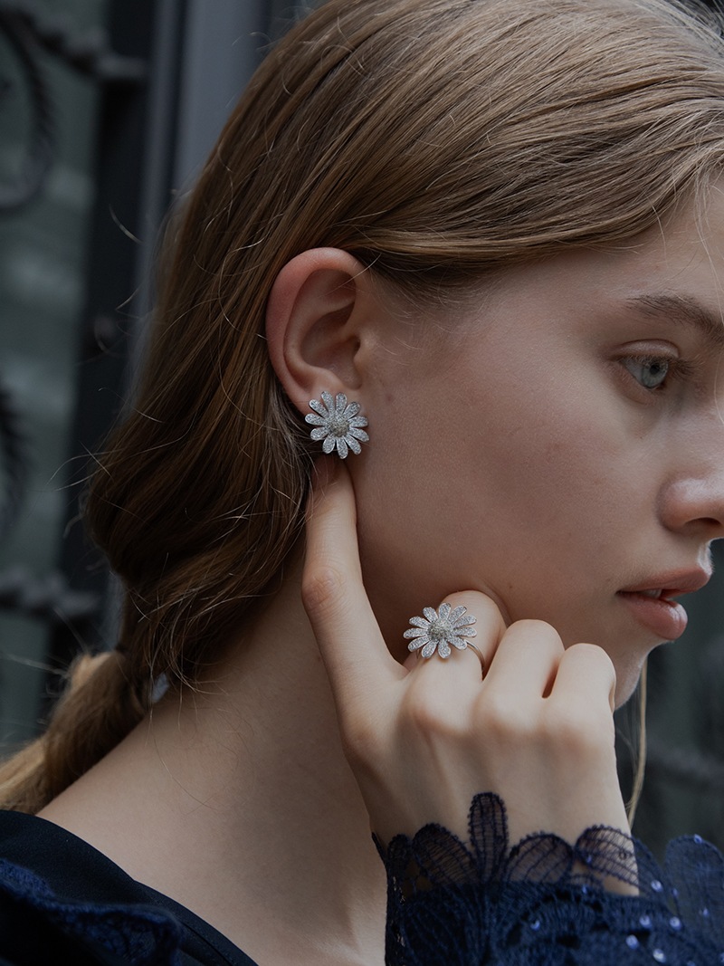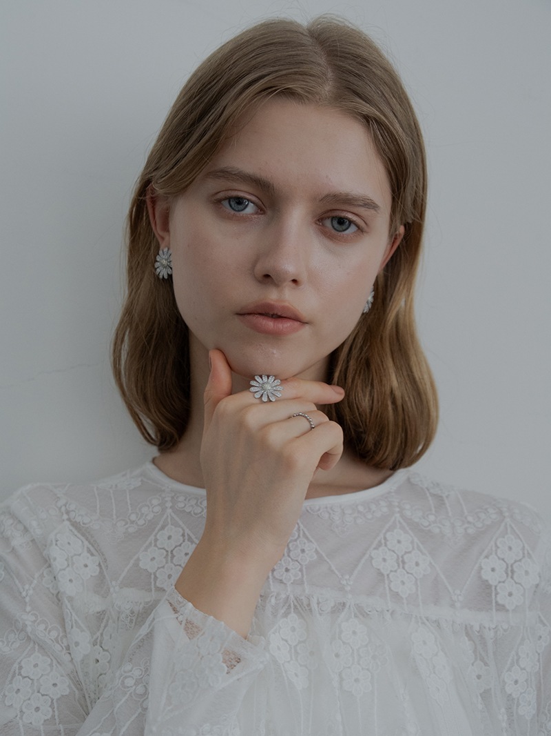 中央のカラーはほんのりイエローな石を使用し、綺麗目で大人がつけるどのようなコーディネートにも馴染むように仕上げました。