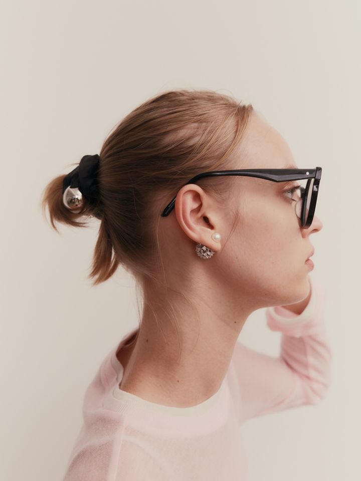 シュシュ部分らサテン生地を使用し、上品な中に輝きを放つボールモチーフがヘアスタイルを華やかに仕上げてくれます。