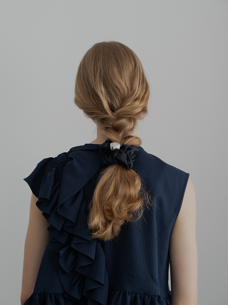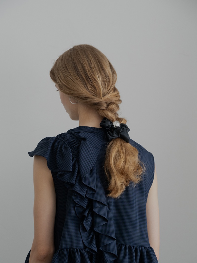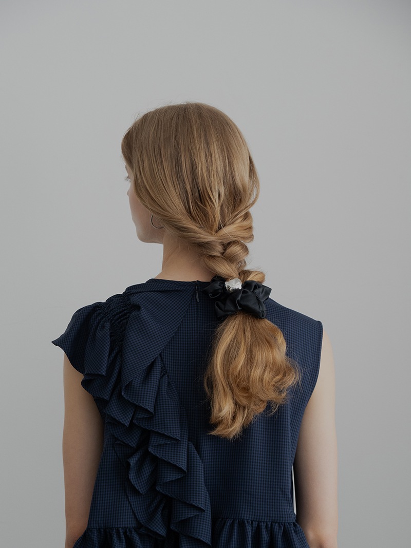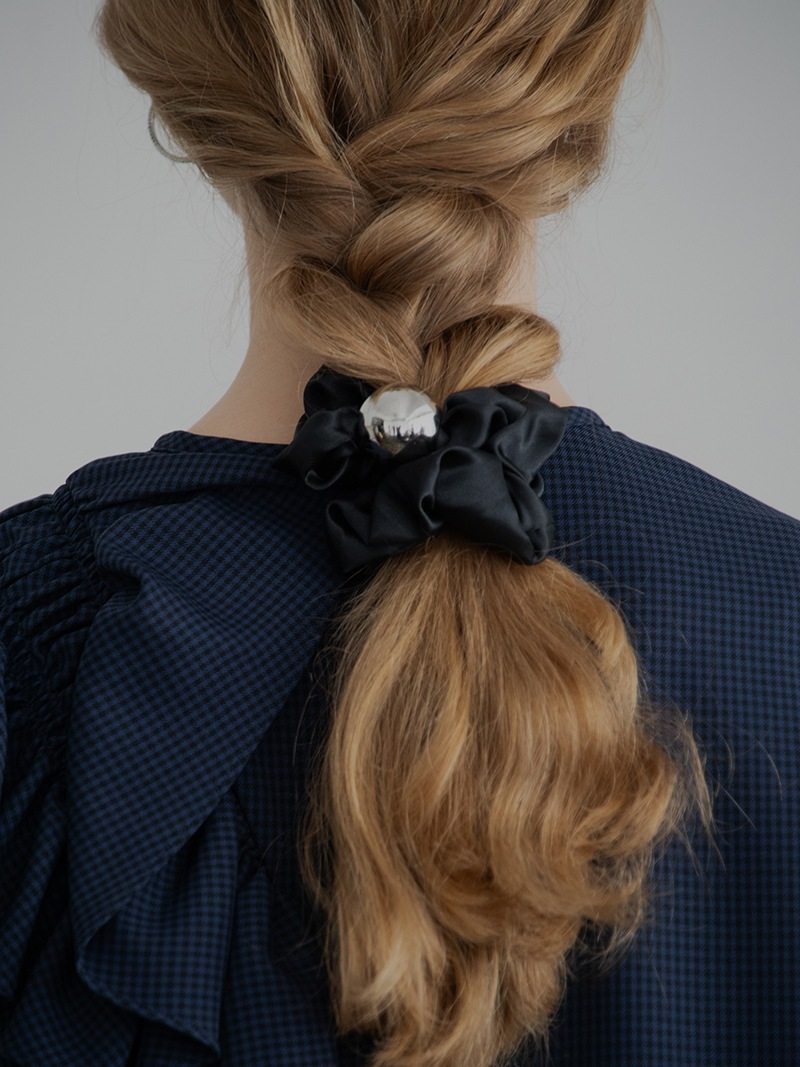 シュシュ部分らサテン生地を使用し、上品な中に輝きを放つボールモチーフがヘアスタイルを華やかに仕上げてくれます。