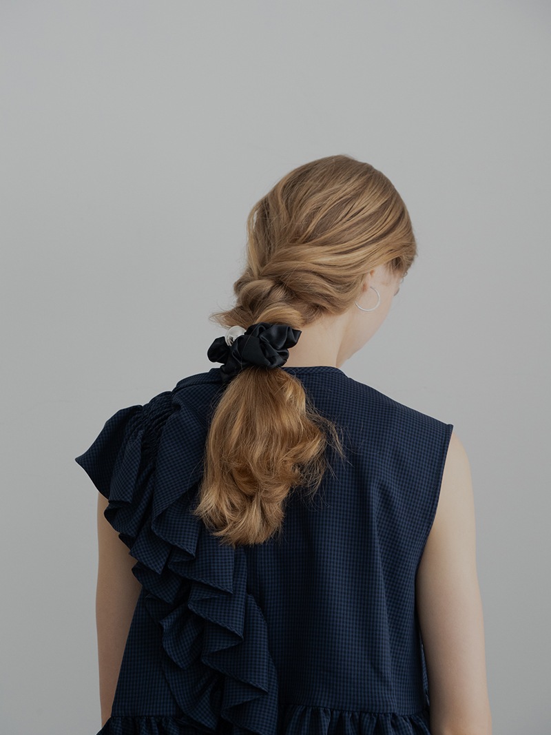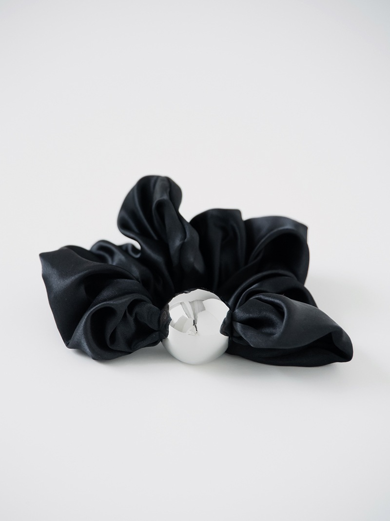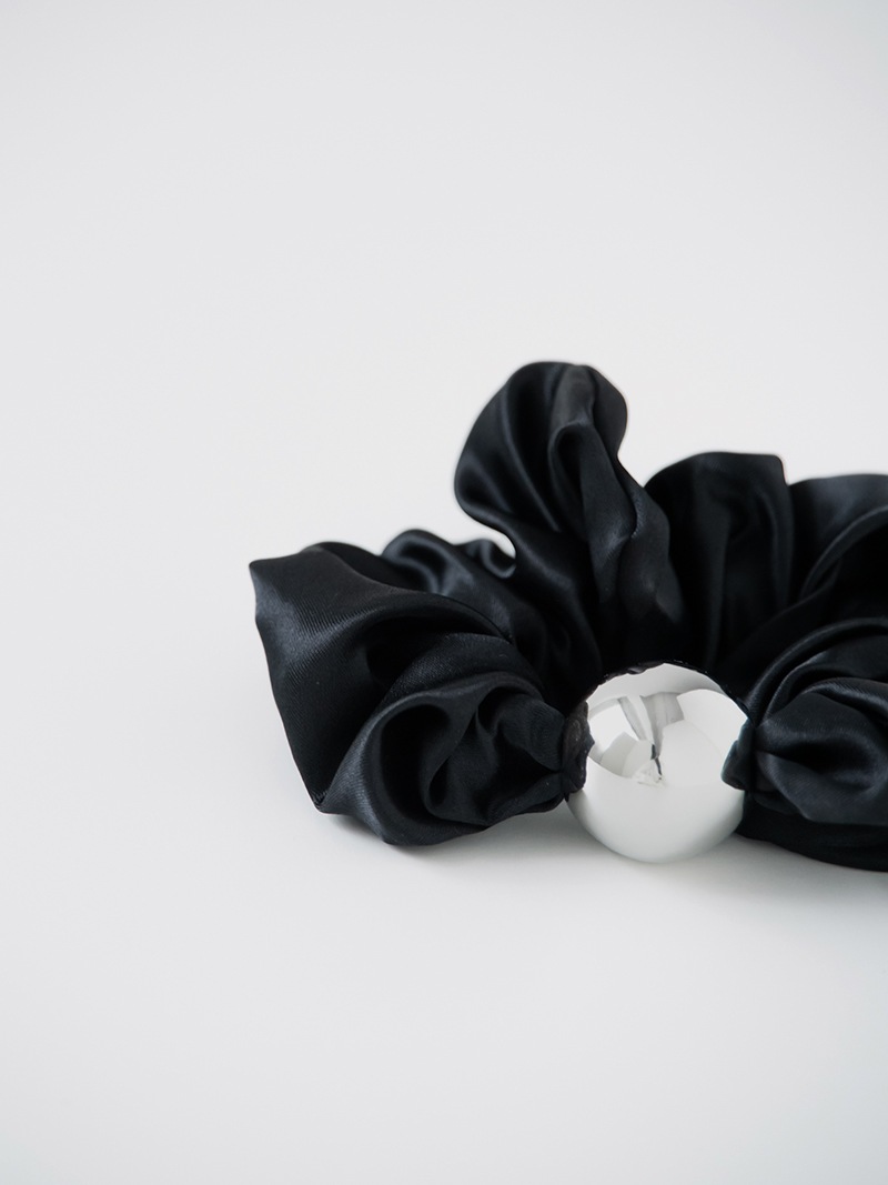 ボリュームのあるメタルボールが存在感を発揮するシュシュです。