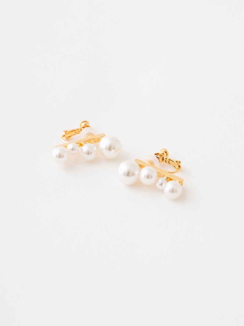 サイズの違うパールをあしらったシンプルな中に存在感のあるイヤリングです。