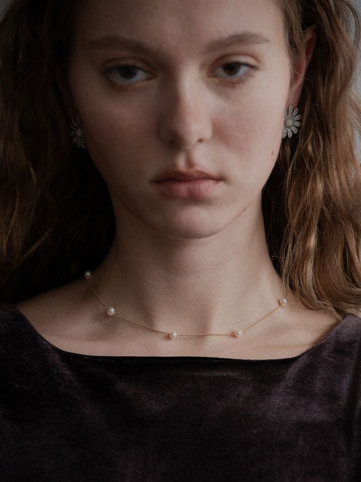 小粒な淡水パールがお顔周りにずっと馴染み、自然な華やかさをプラスします。