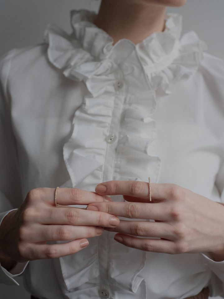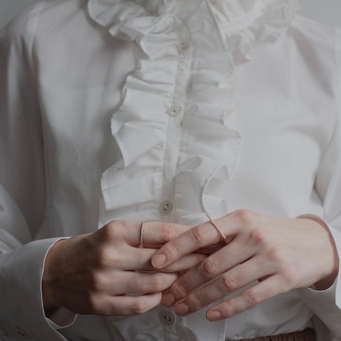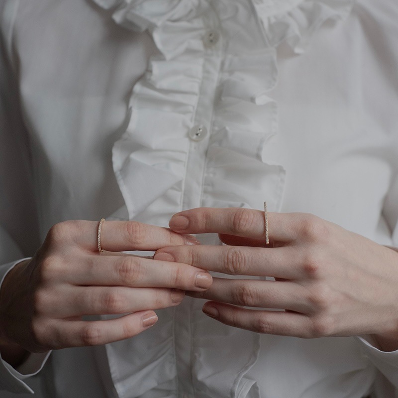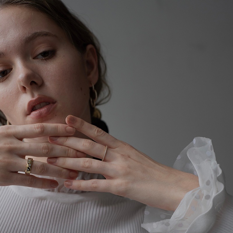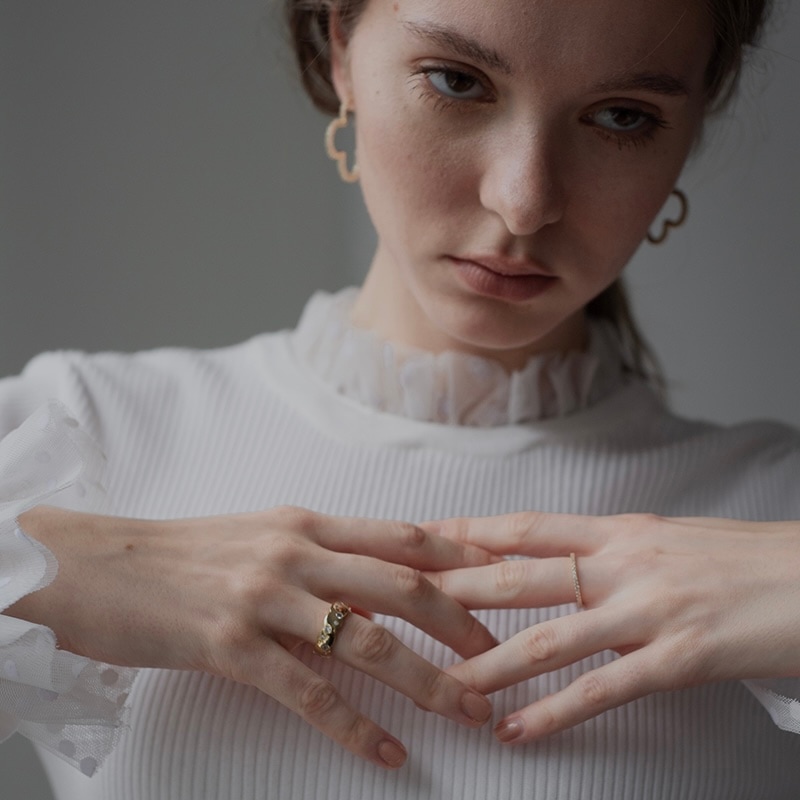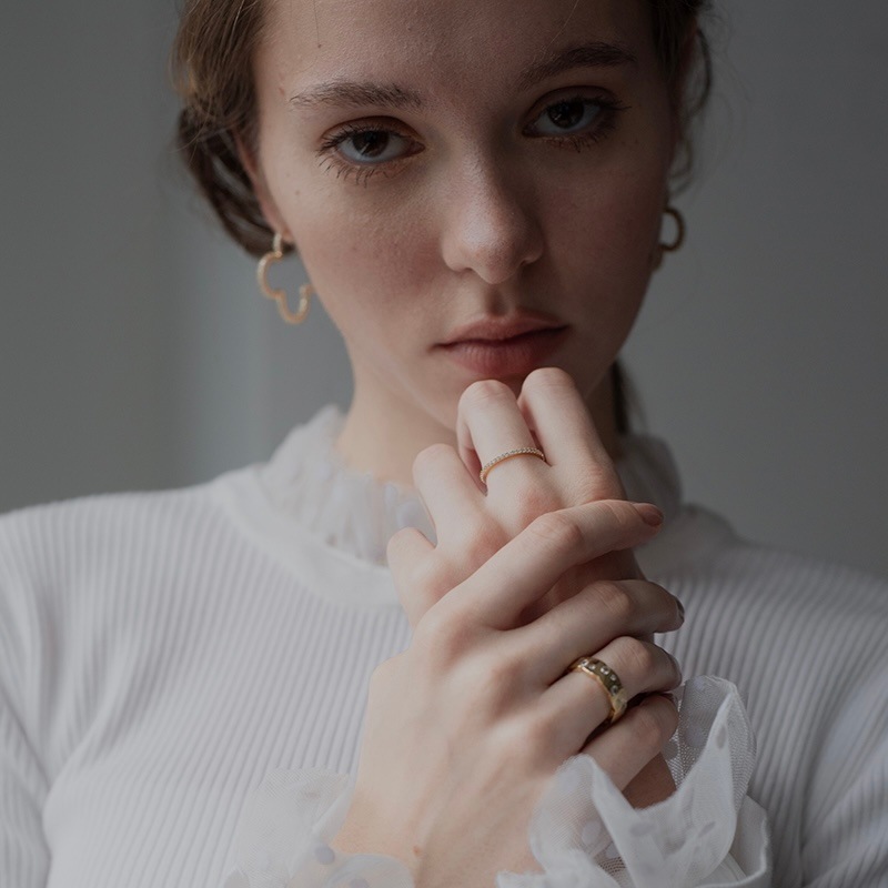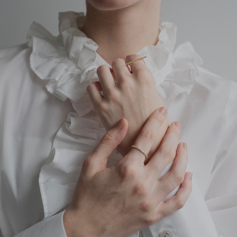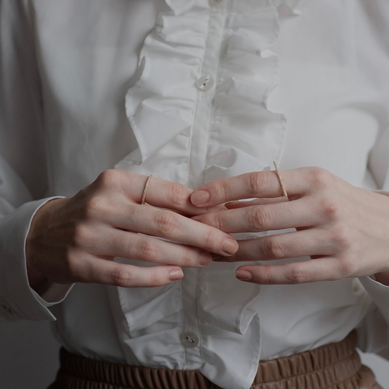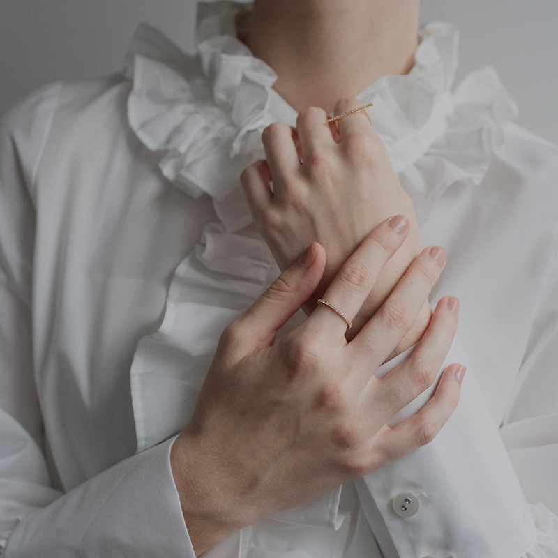 他のリングの邪魔をせず、重ねづけにもおすすめです。