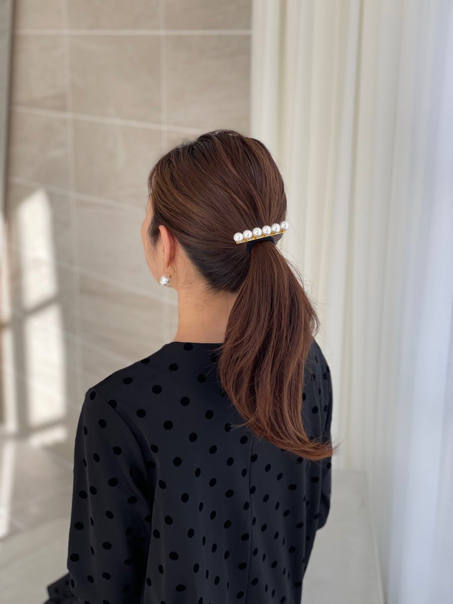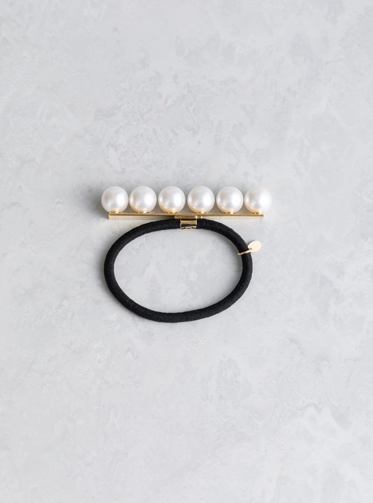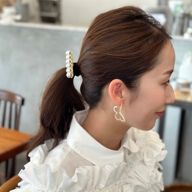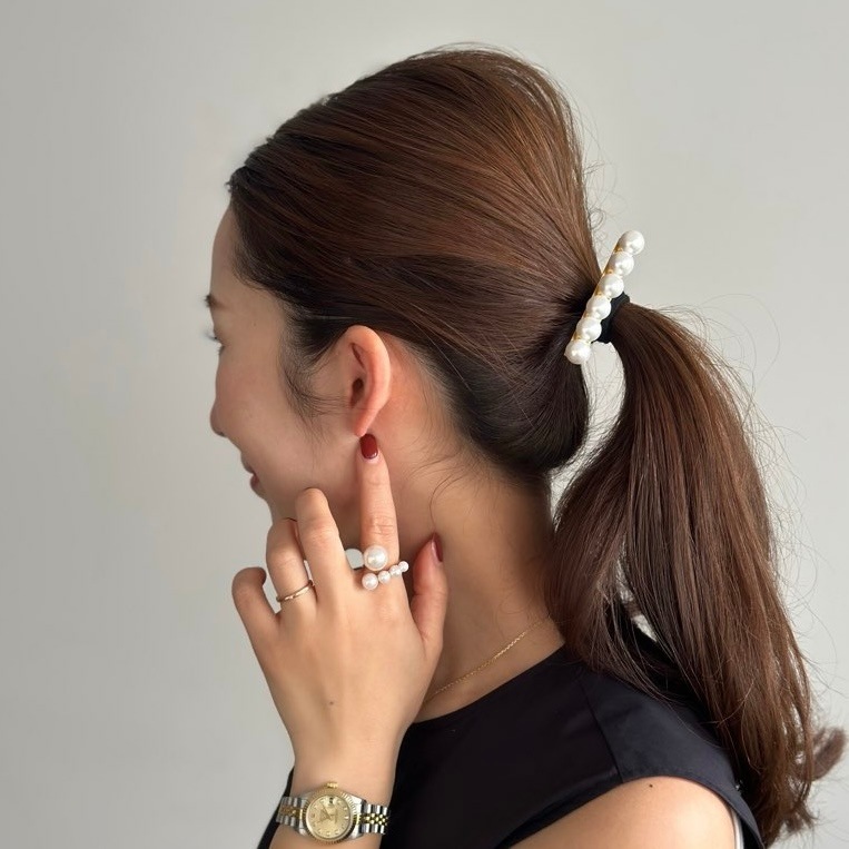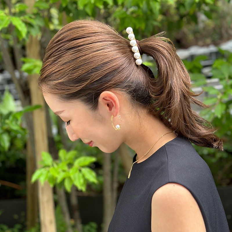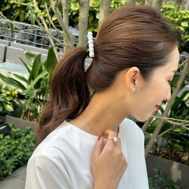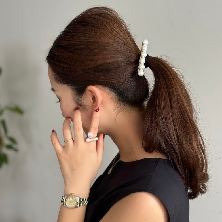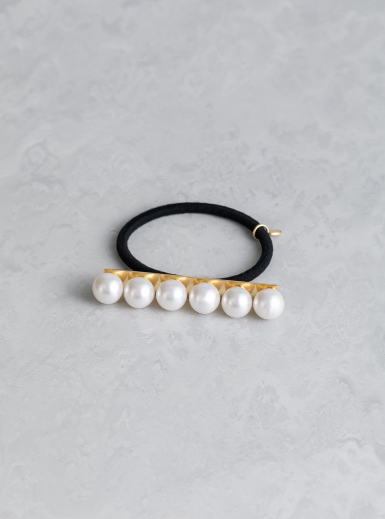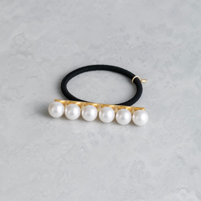 ホワイトパールが6粒並んだ可愛いかつお上品なヘアゴムです。
