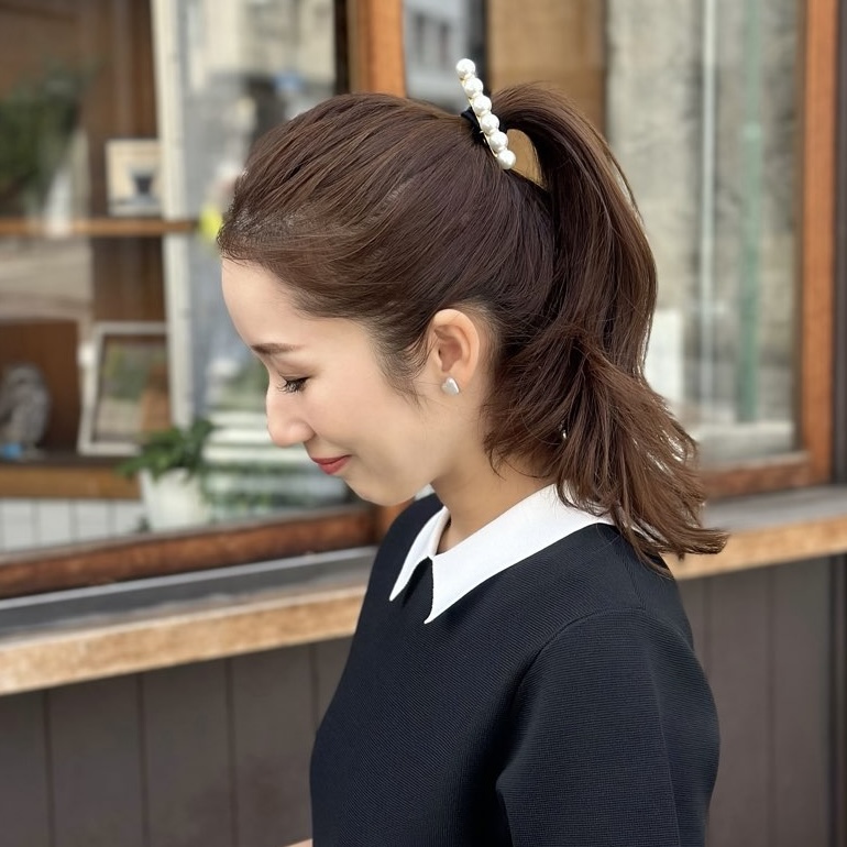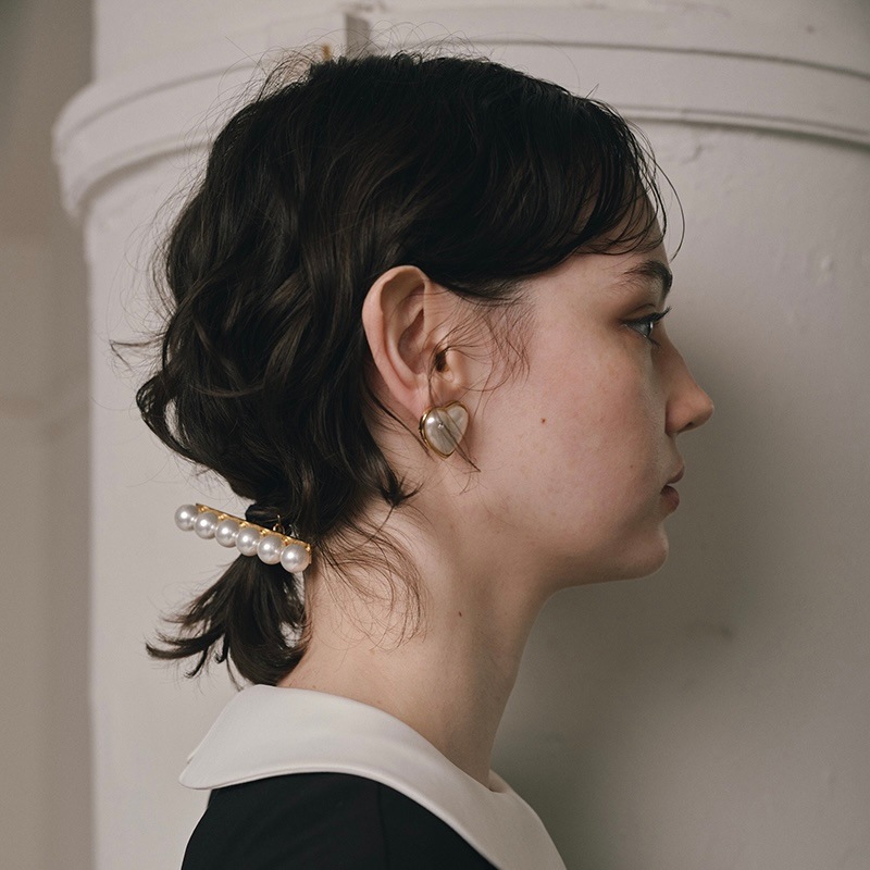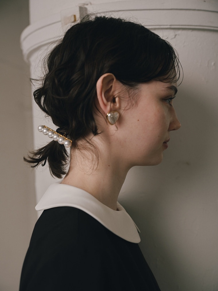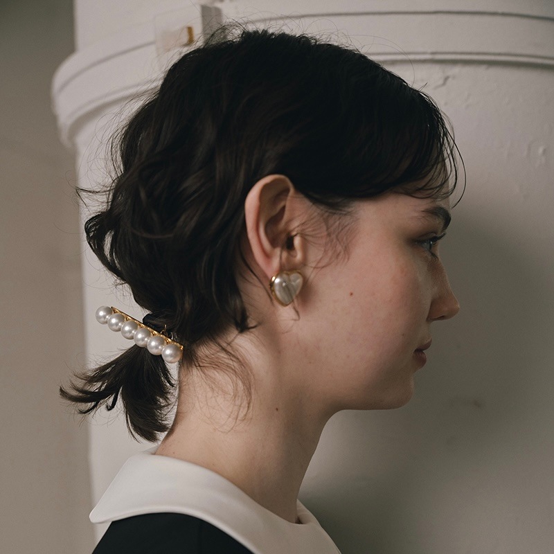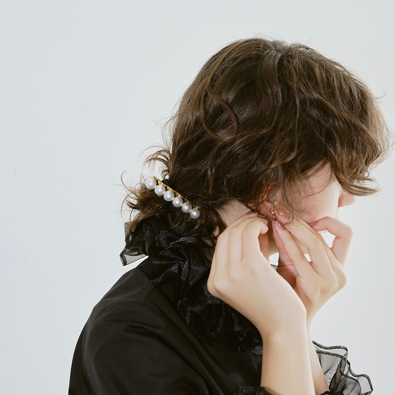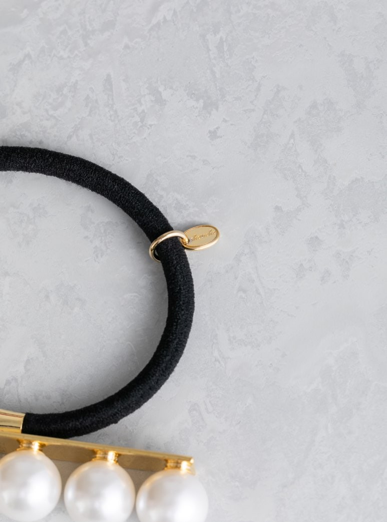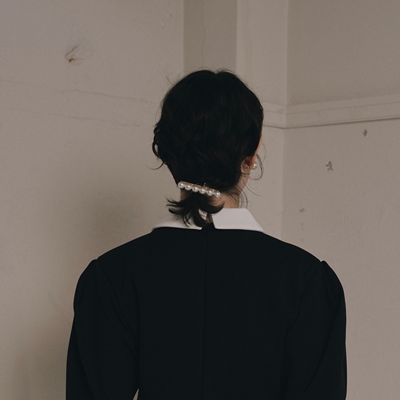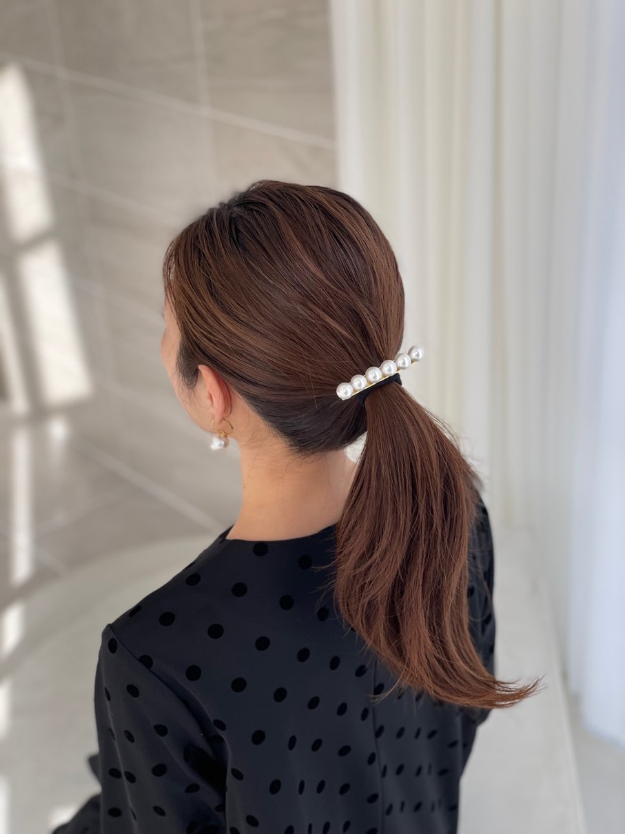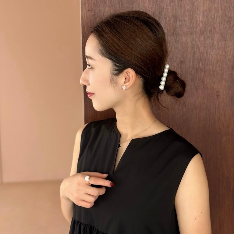 ホワイトパールが6粒並んだ可愛いかつお上品なヘアゴムです。