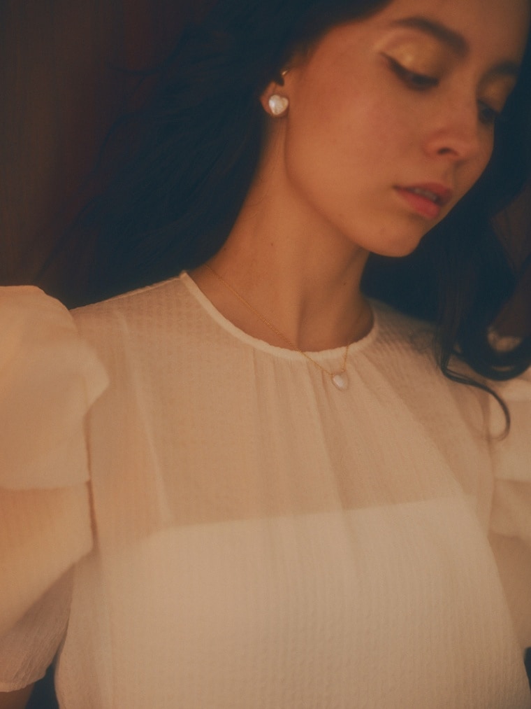 ピタッとくっついたシルエットが大人可愛く、パールですのでお上品にもお召し頂けます。