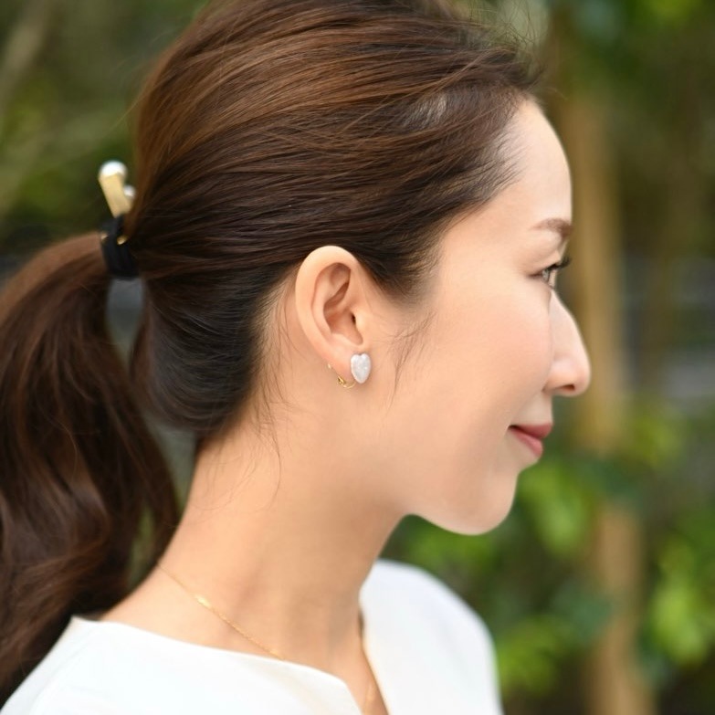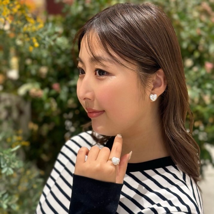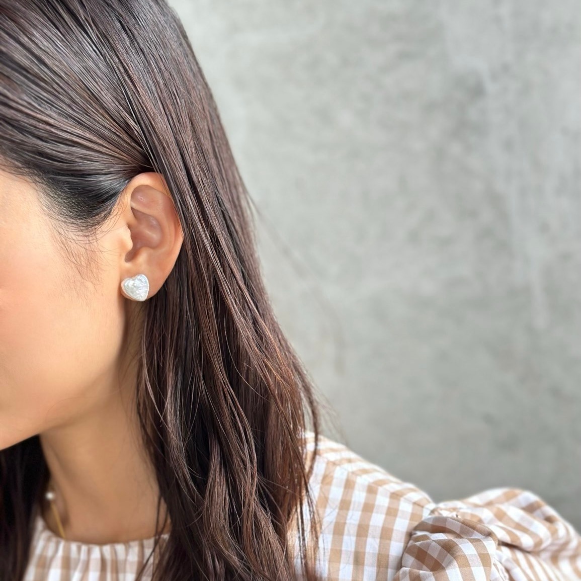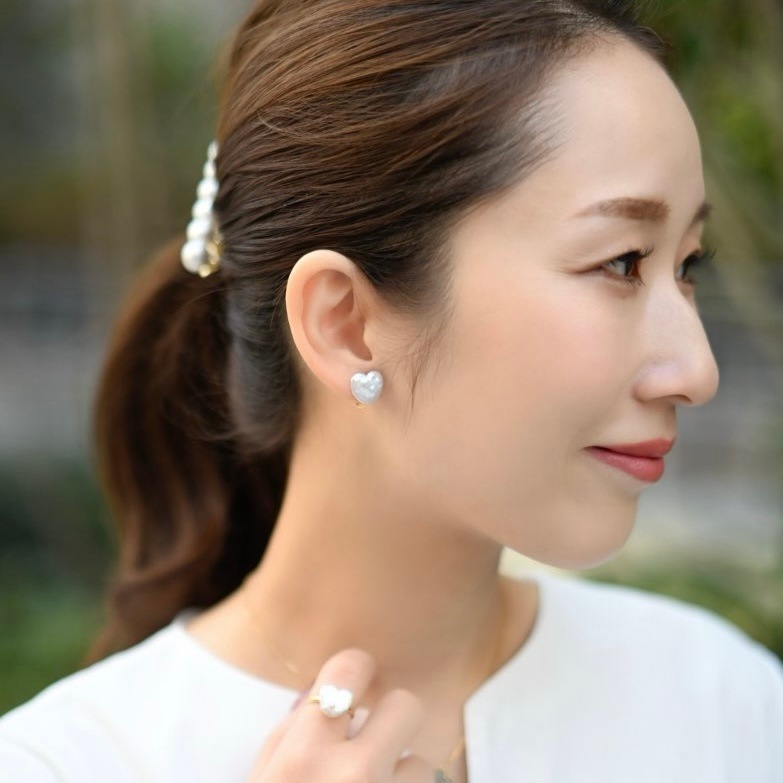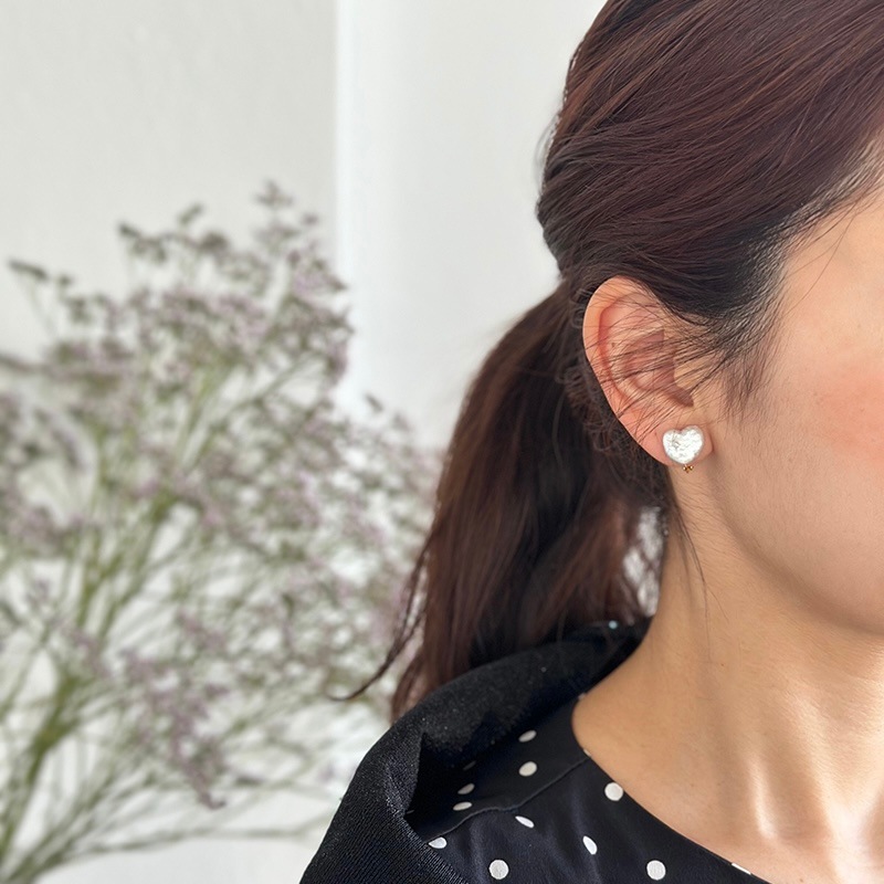 キュートなハートの形をした淡水パールを使用したイヤリングです。