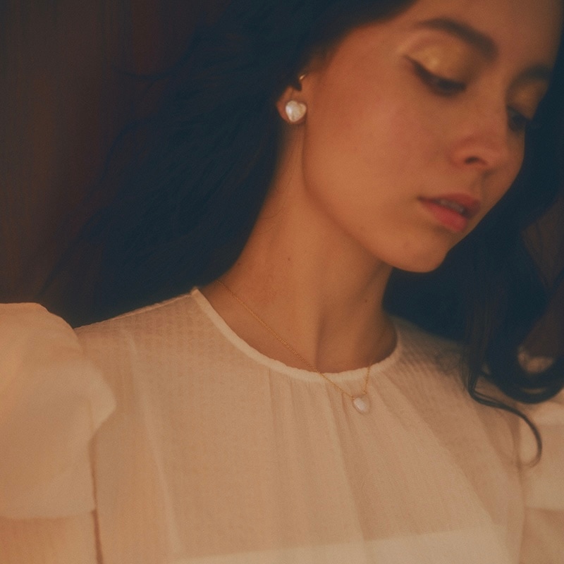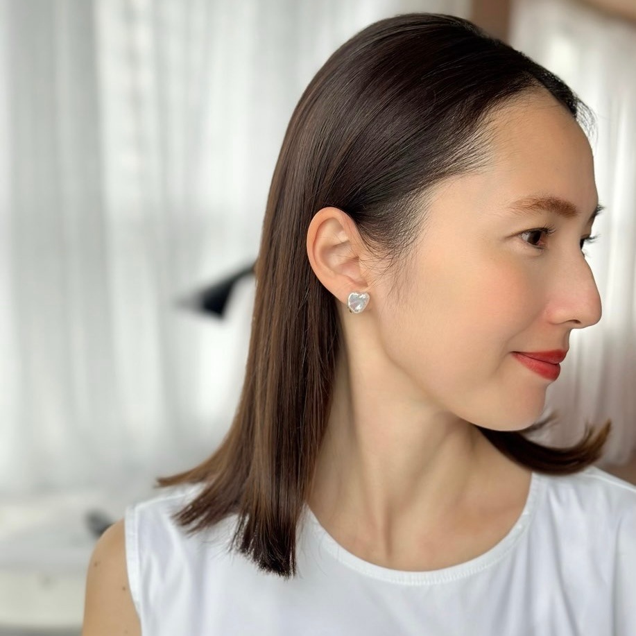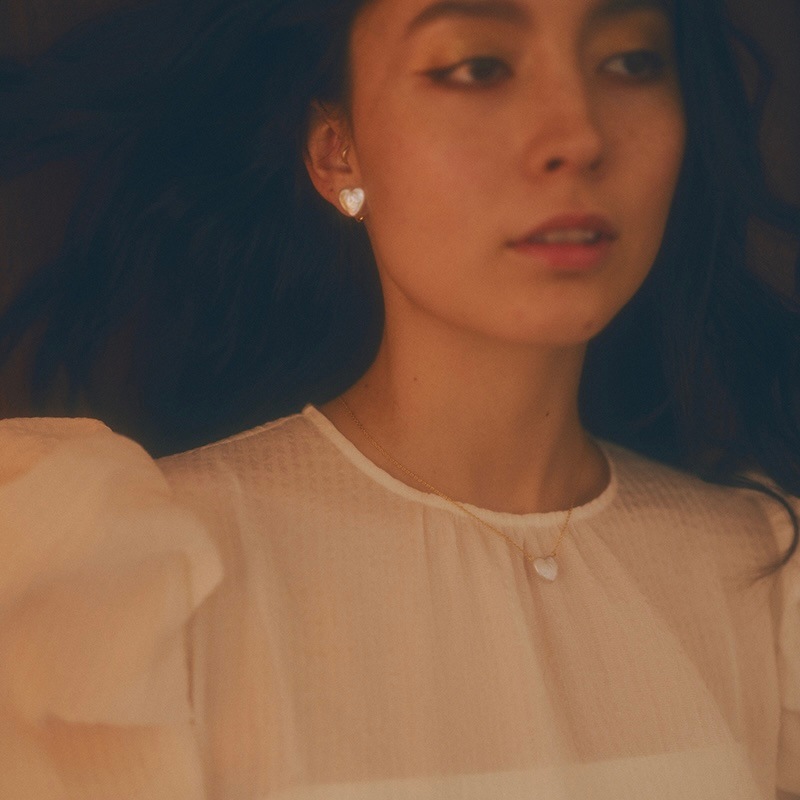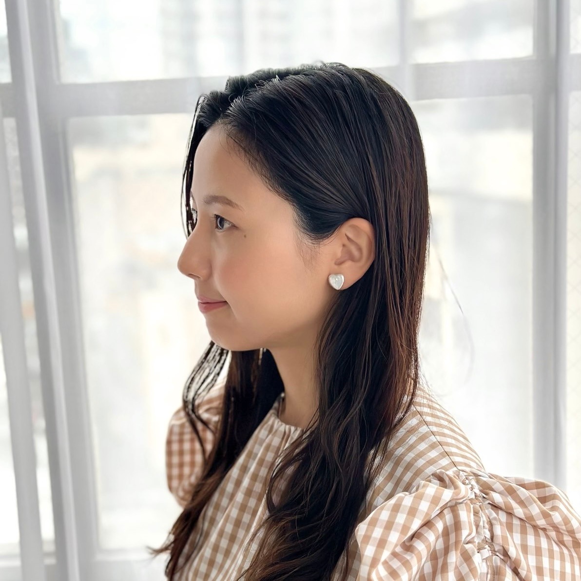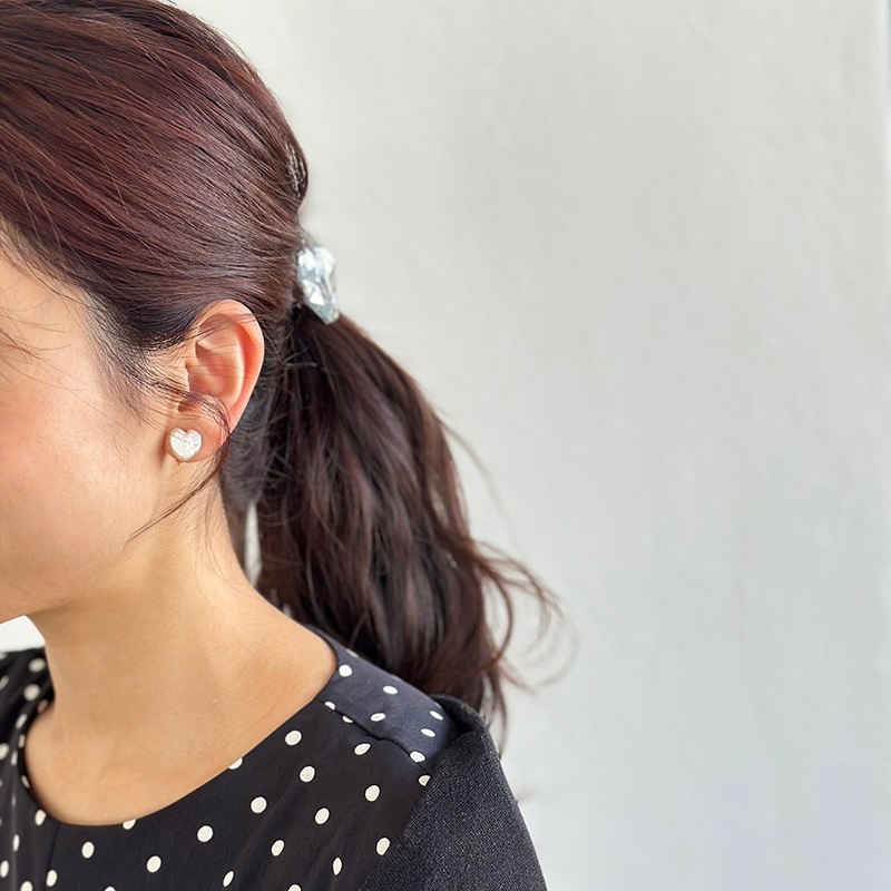 キュートなハートの形をした淡水パールを使用したイヤリングです。
