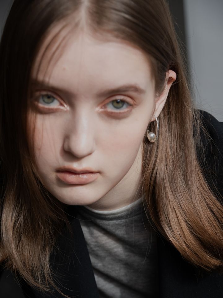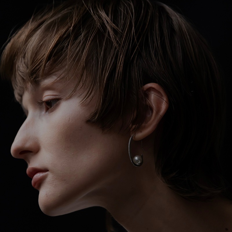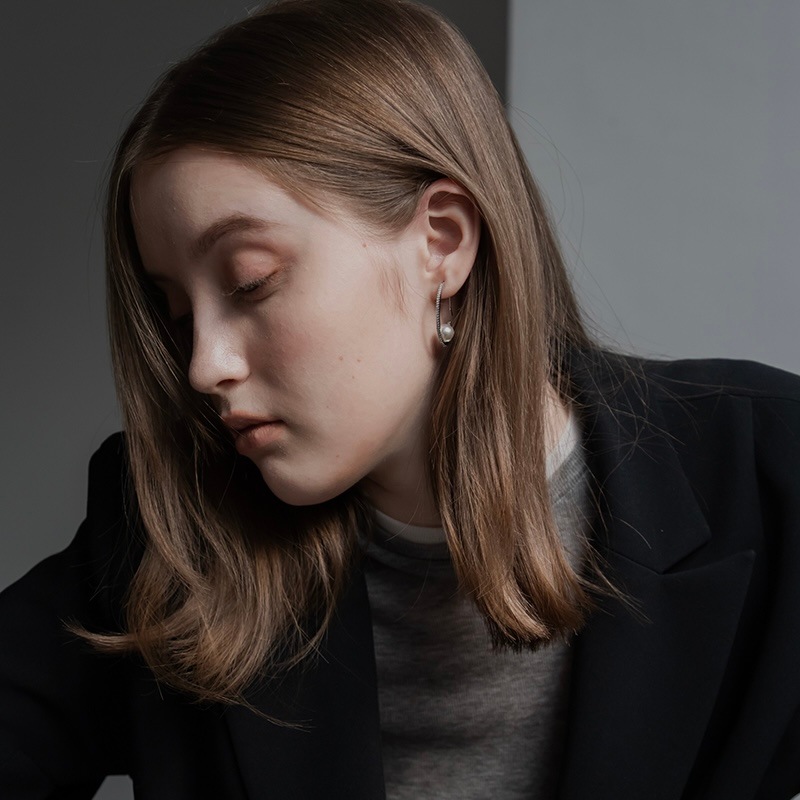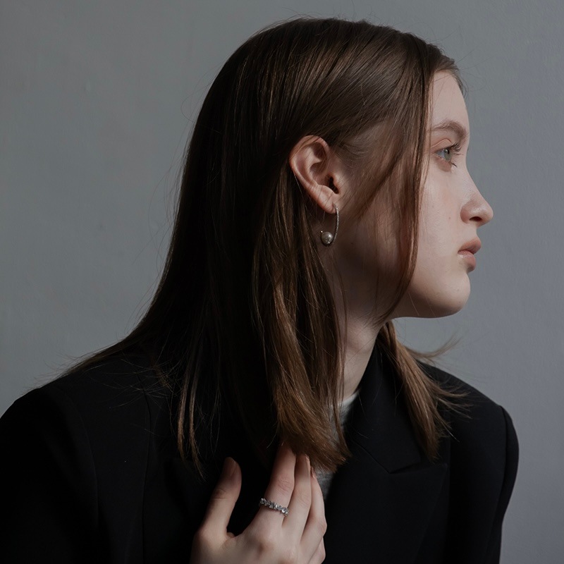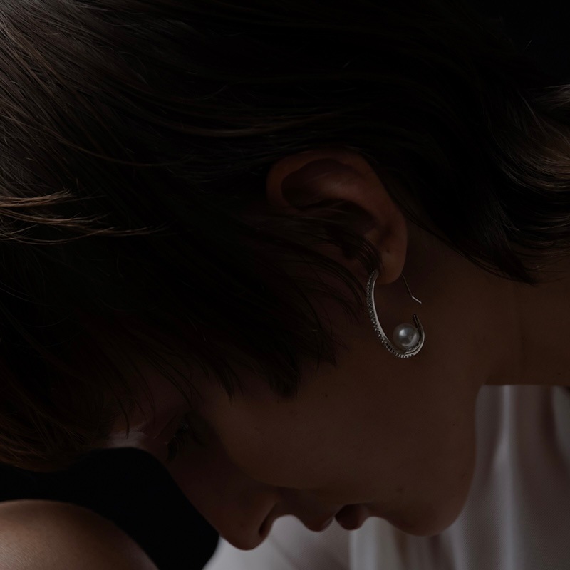 華奢なラインから放たれる綺麗な輝きにパールの上品さが加わり、女性らしいピアスに仕上げました。