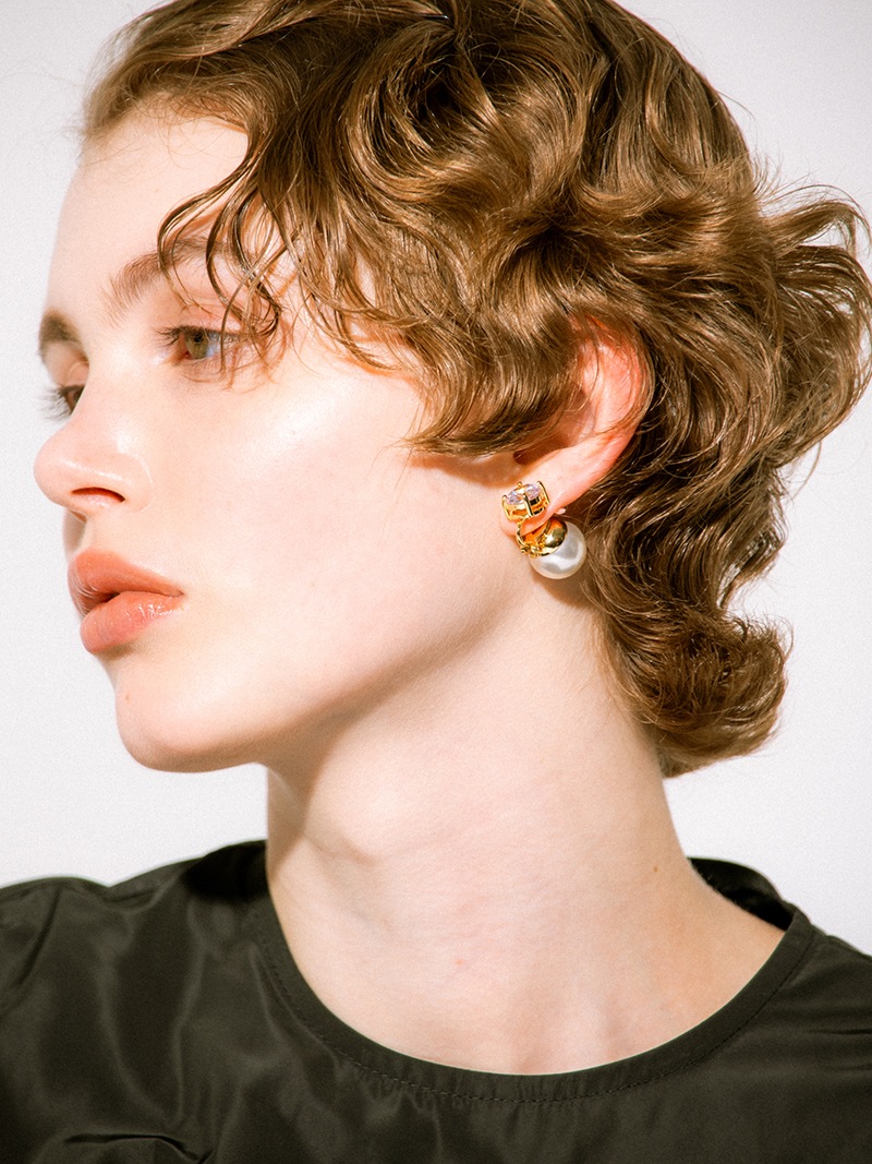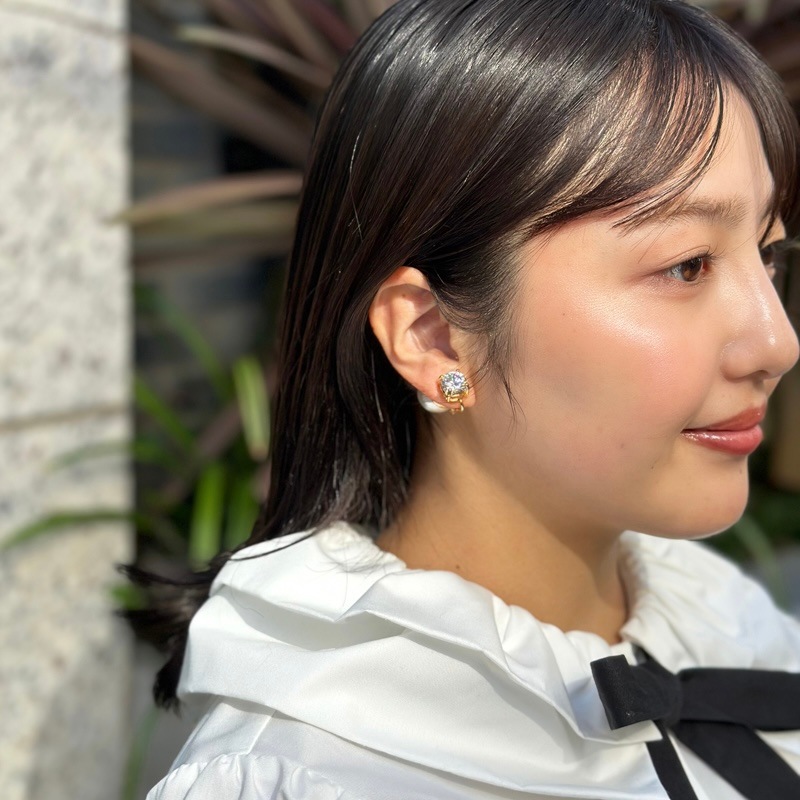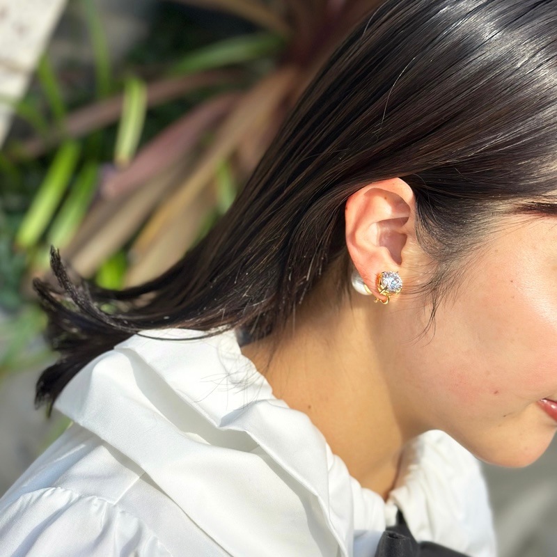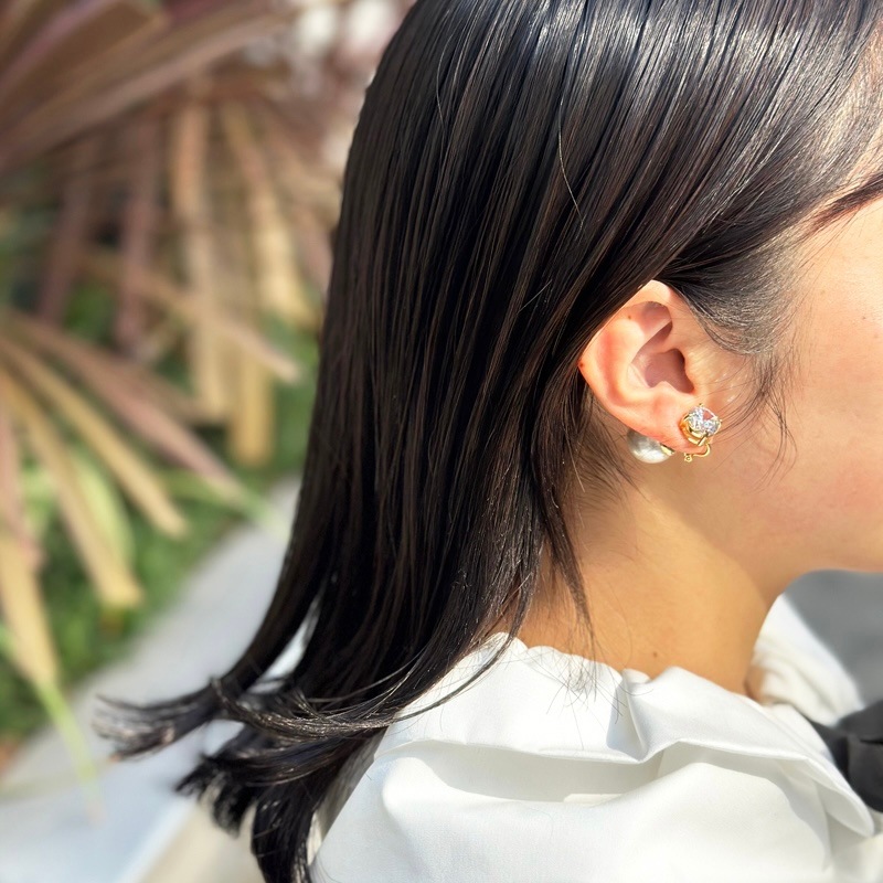 ストーンとパールを前後でお召し頂けますので、装いに合わせてお楽しみくださいませ。