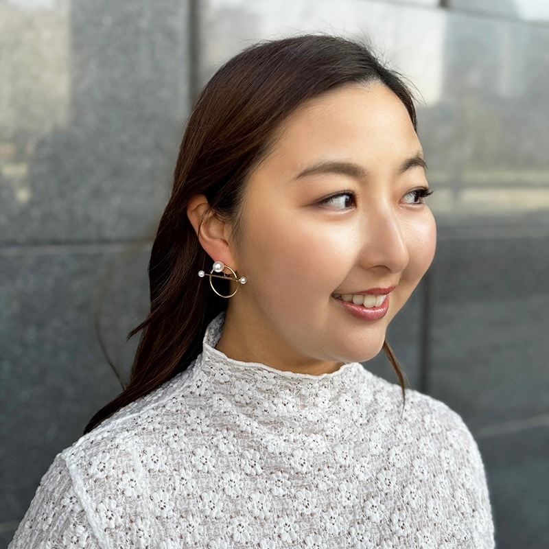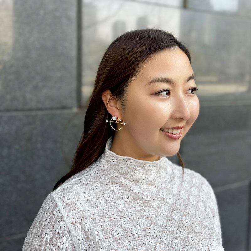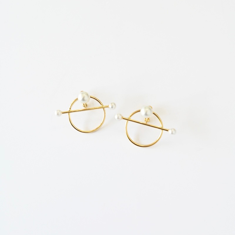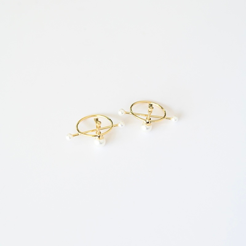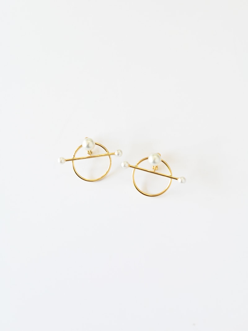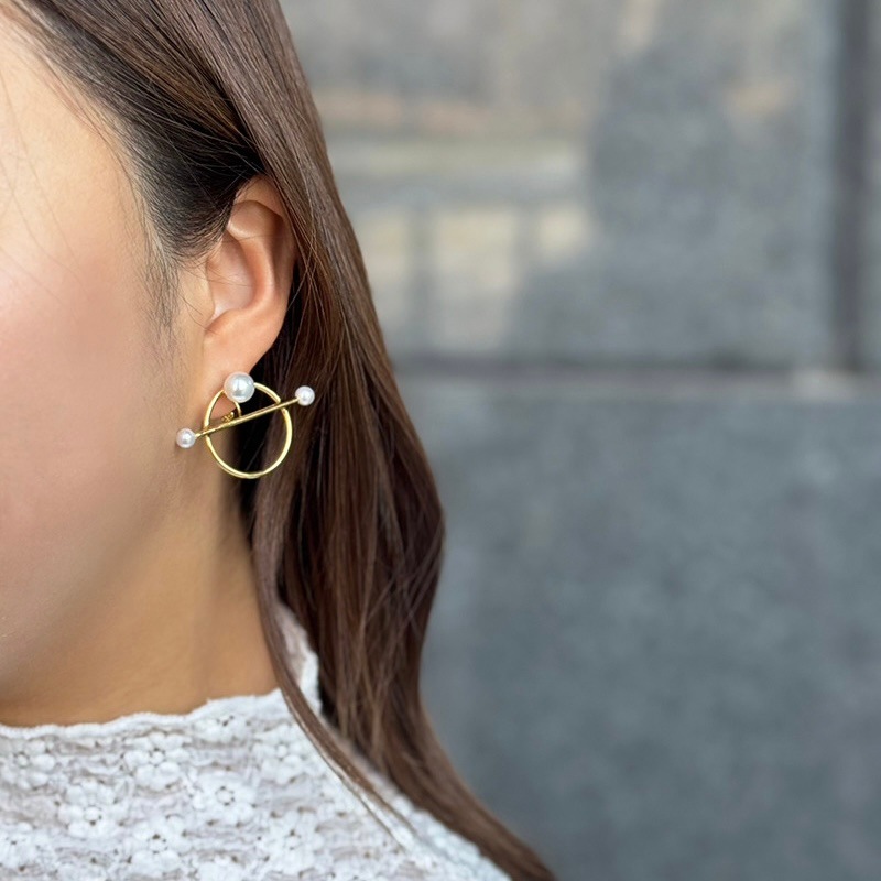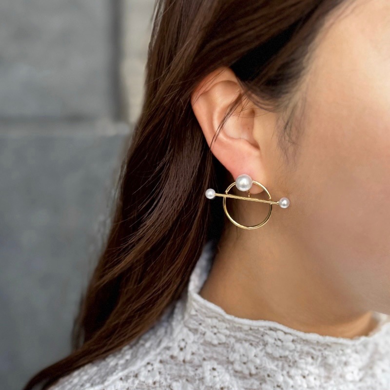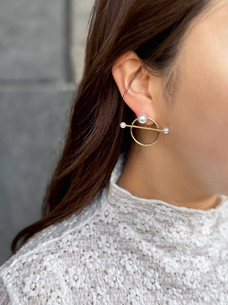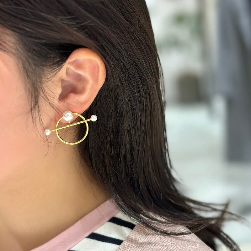 存在感あるデザインがコーディネートのアクセントになるイヤリングです。