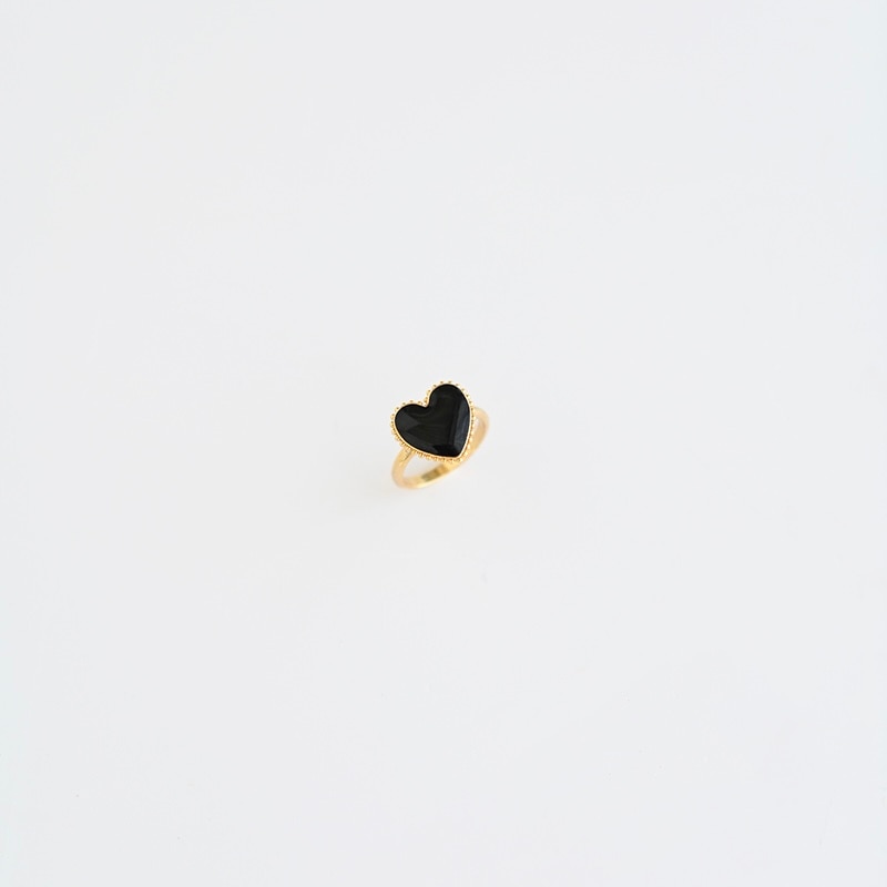 甘くならずに大人がつけるブラックハートに仕上げることで、コーディネートが引き締まりポイントになるリングです。
