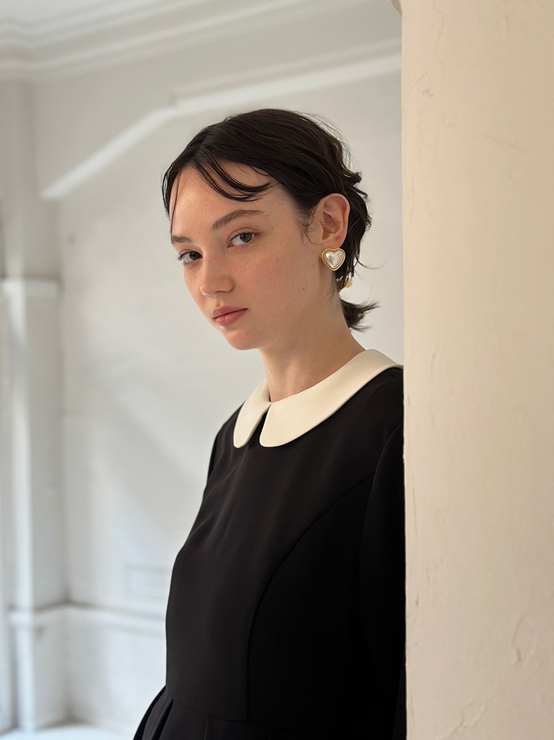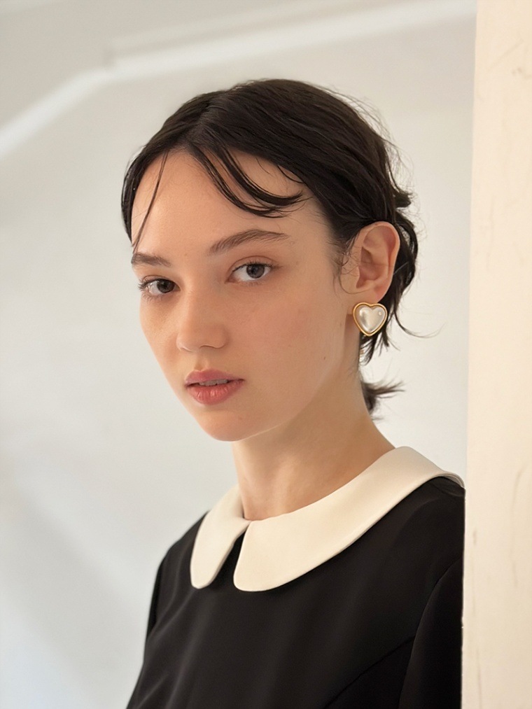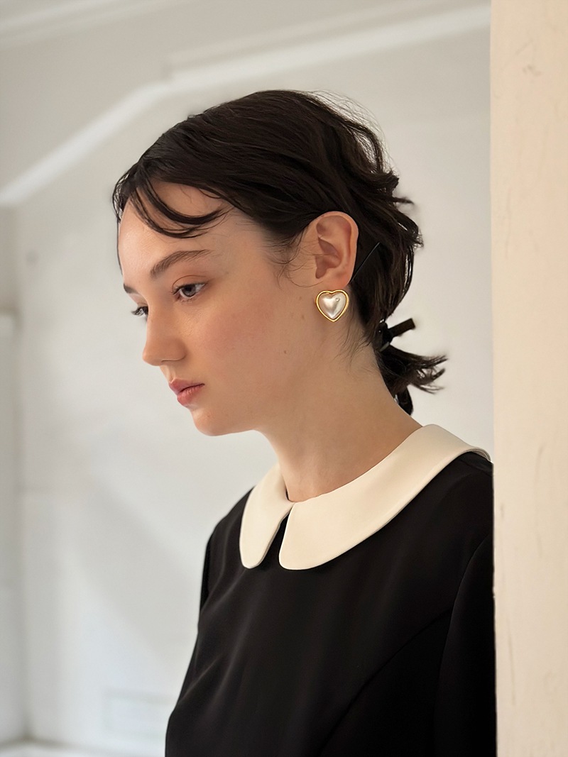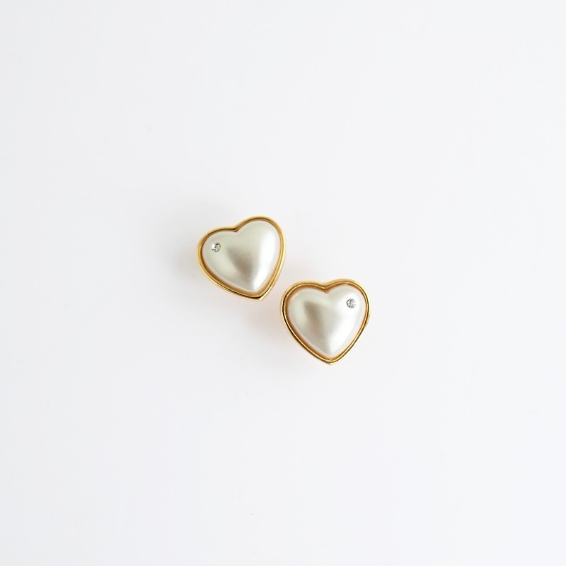 大粒のパールハートがコーディネートの主役になるようなイヤリングです。
