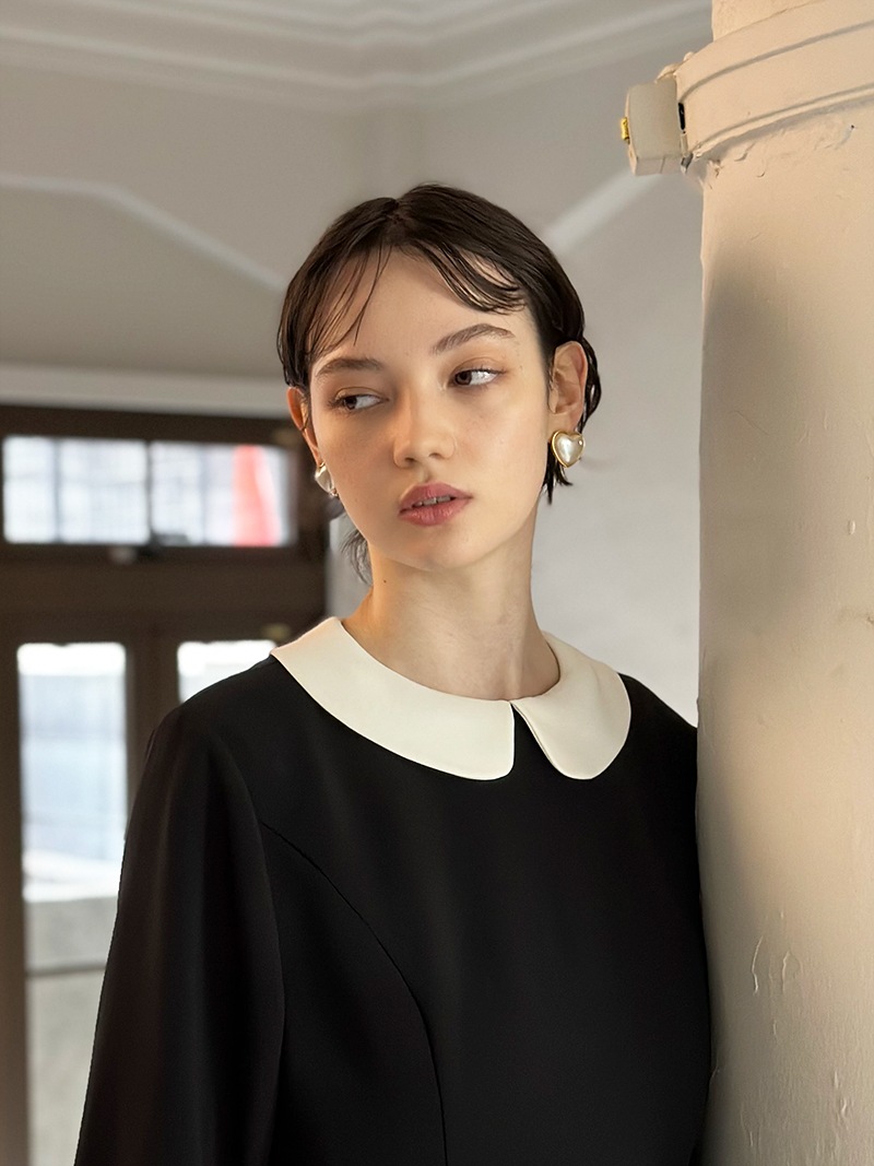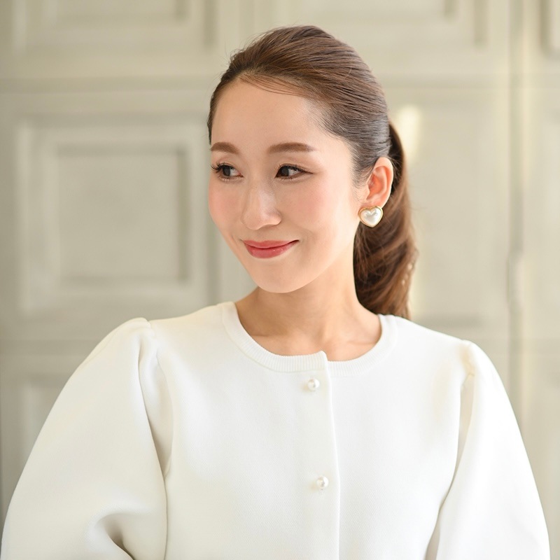 ハートの中にストーンをあしらう事でさりげない輝きもあり、顔周りに華やかさをプラスします。