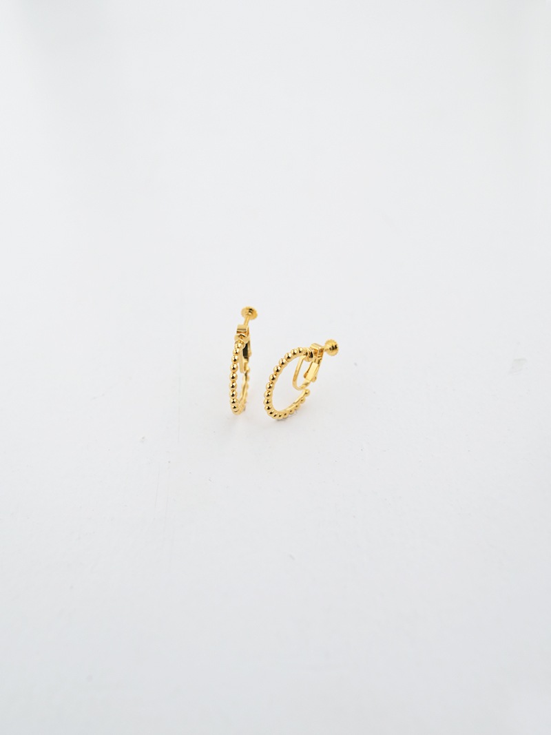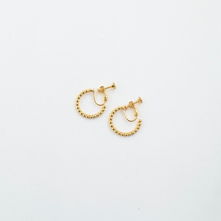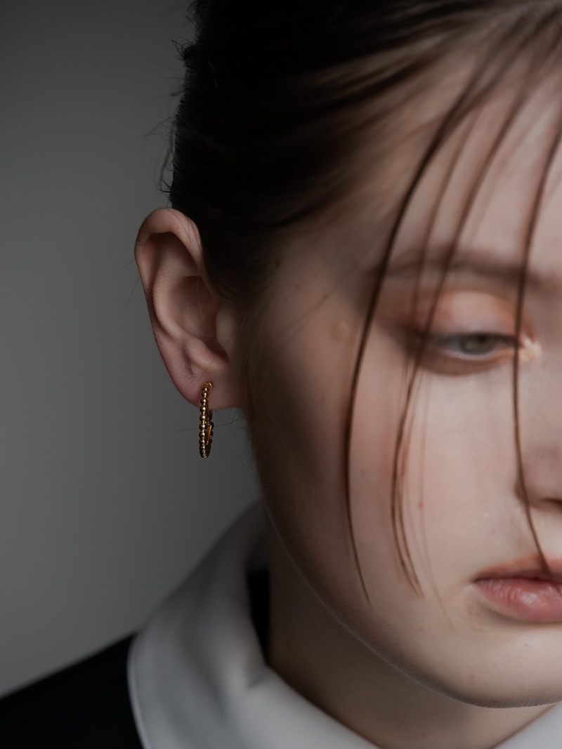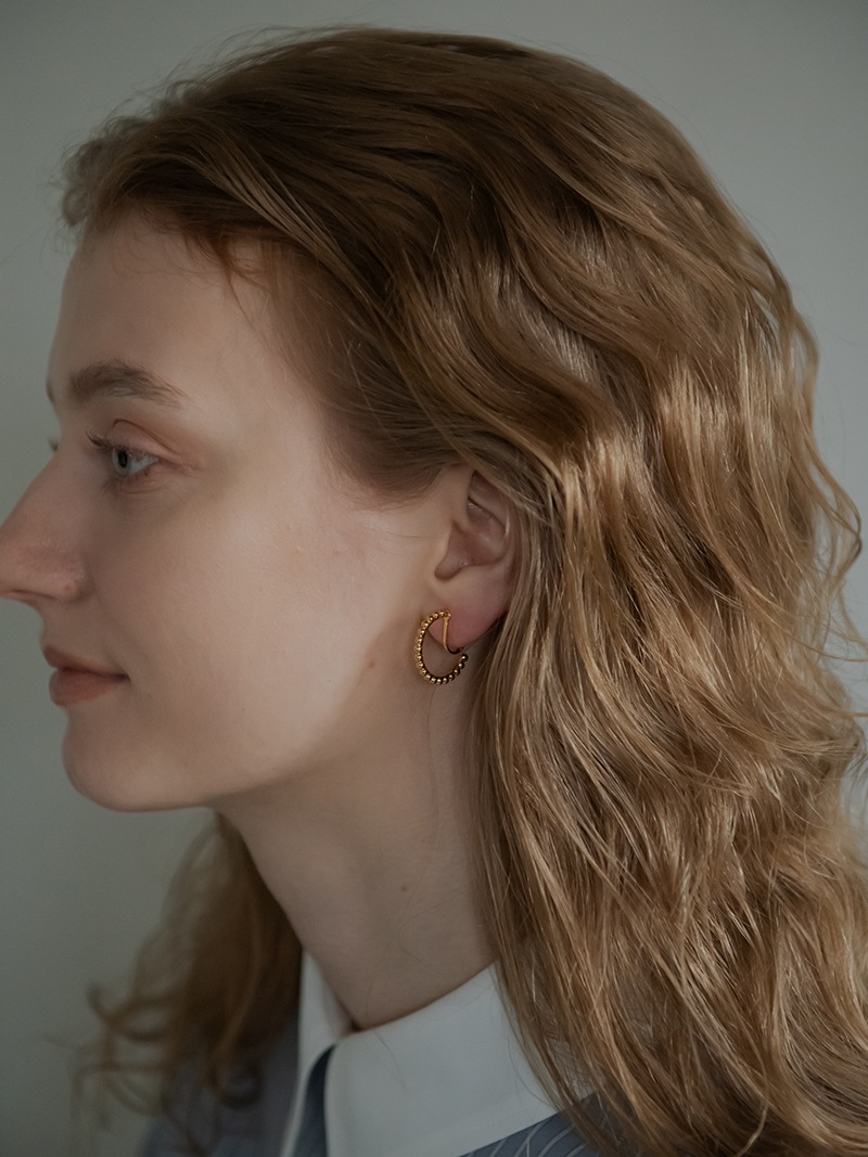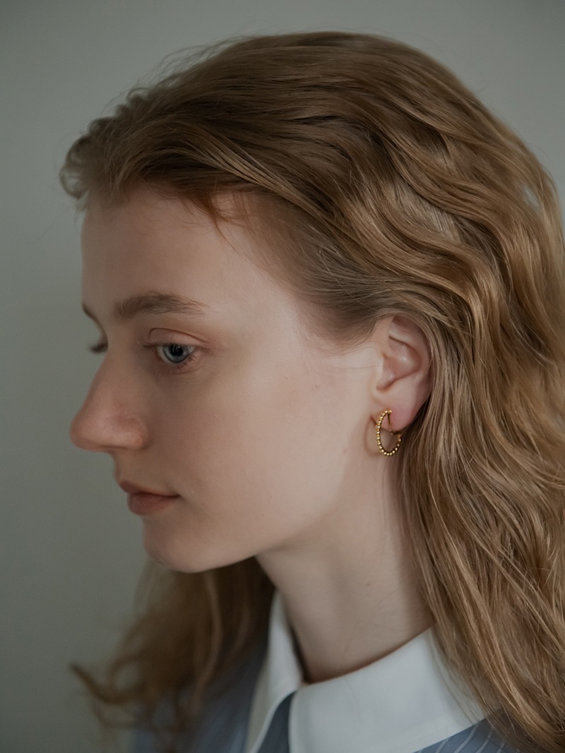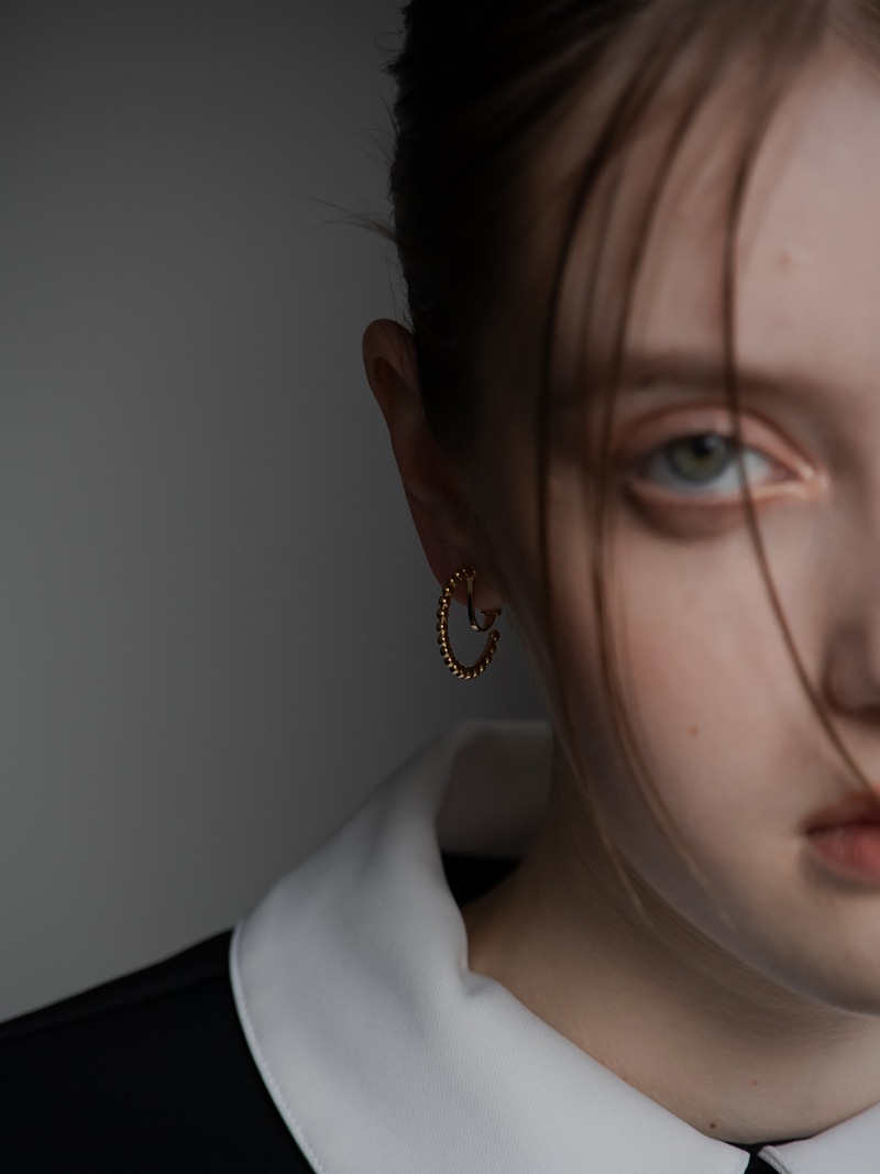 ドットをイメージした小さな丸玉がフープ状に連なったシンプルでありながらお上品さもあるイヤリングです。