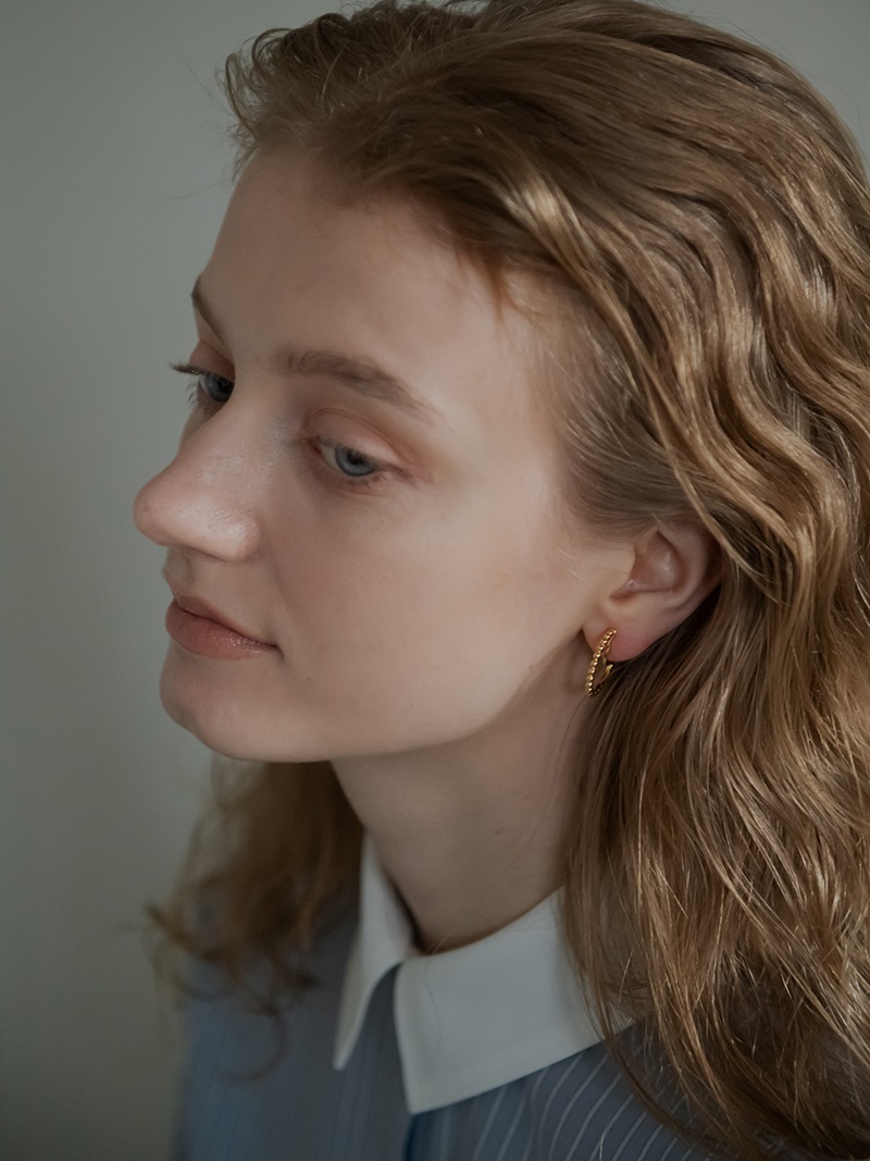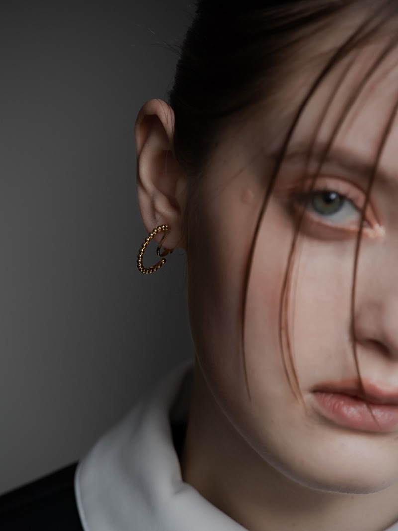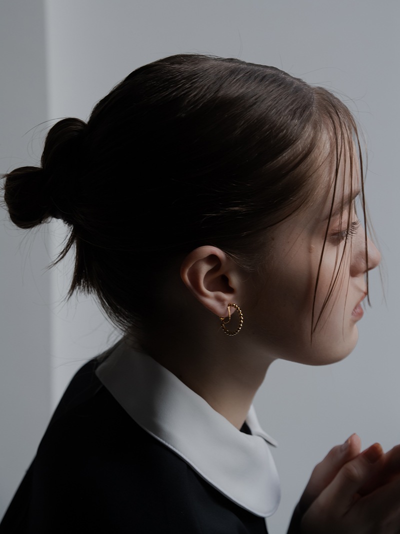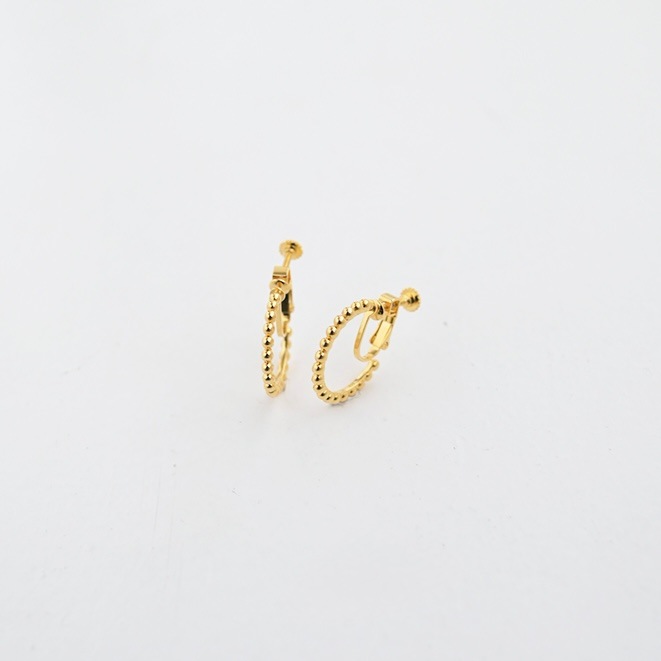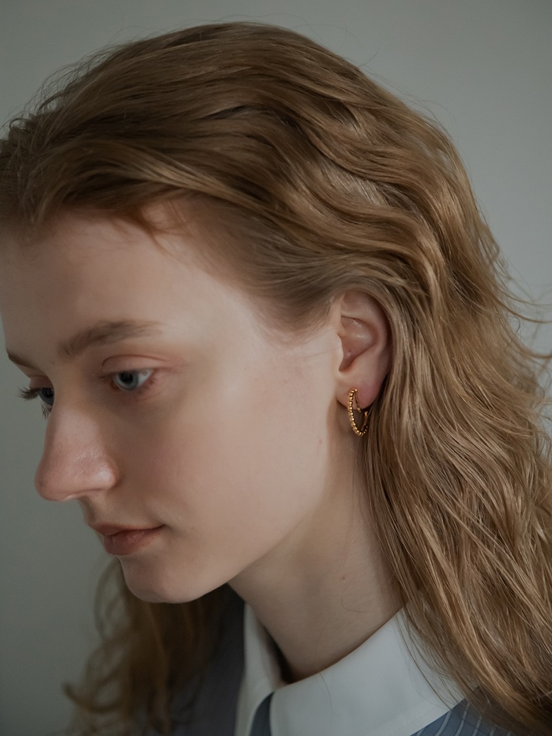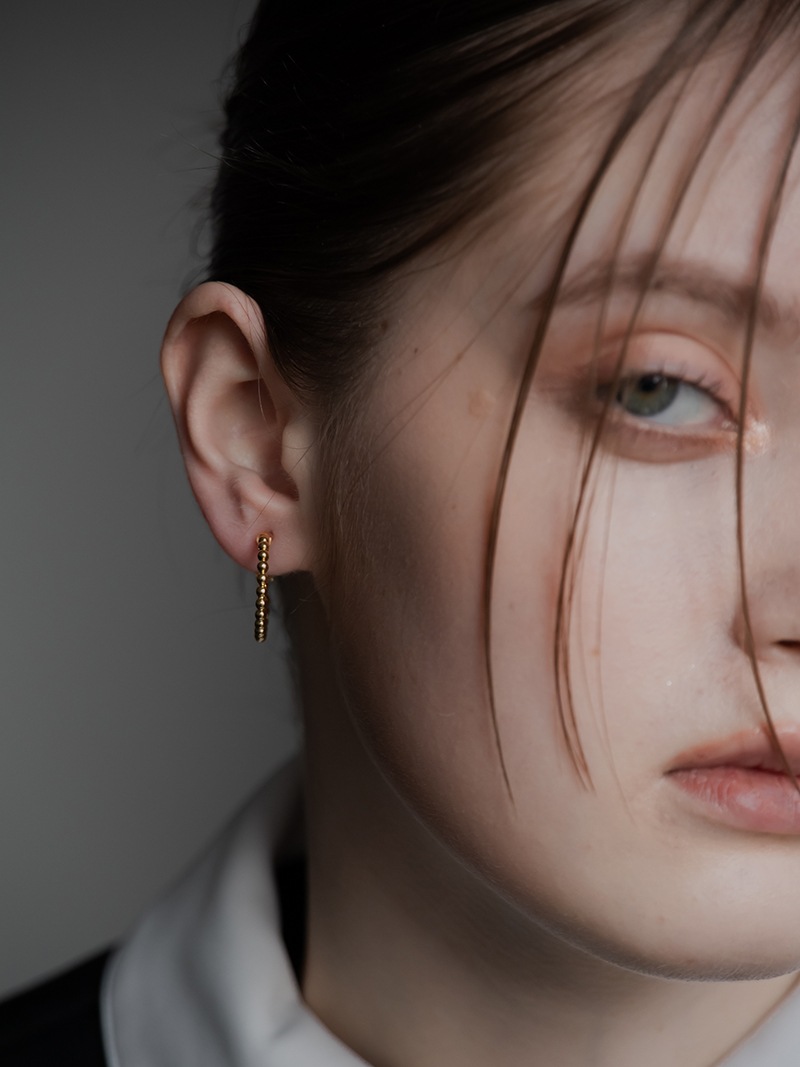 ドットをイメージした小さな丸玉がフープ状に連なったシンプルでありながらお上品さもあるイヤリングです。