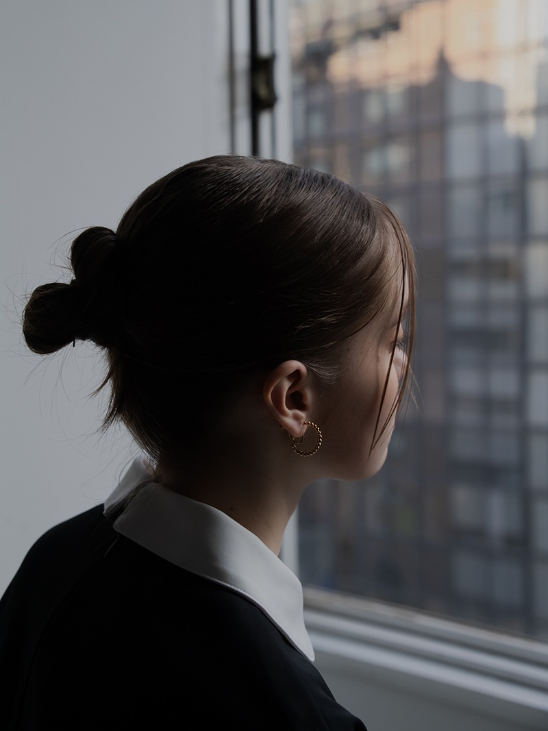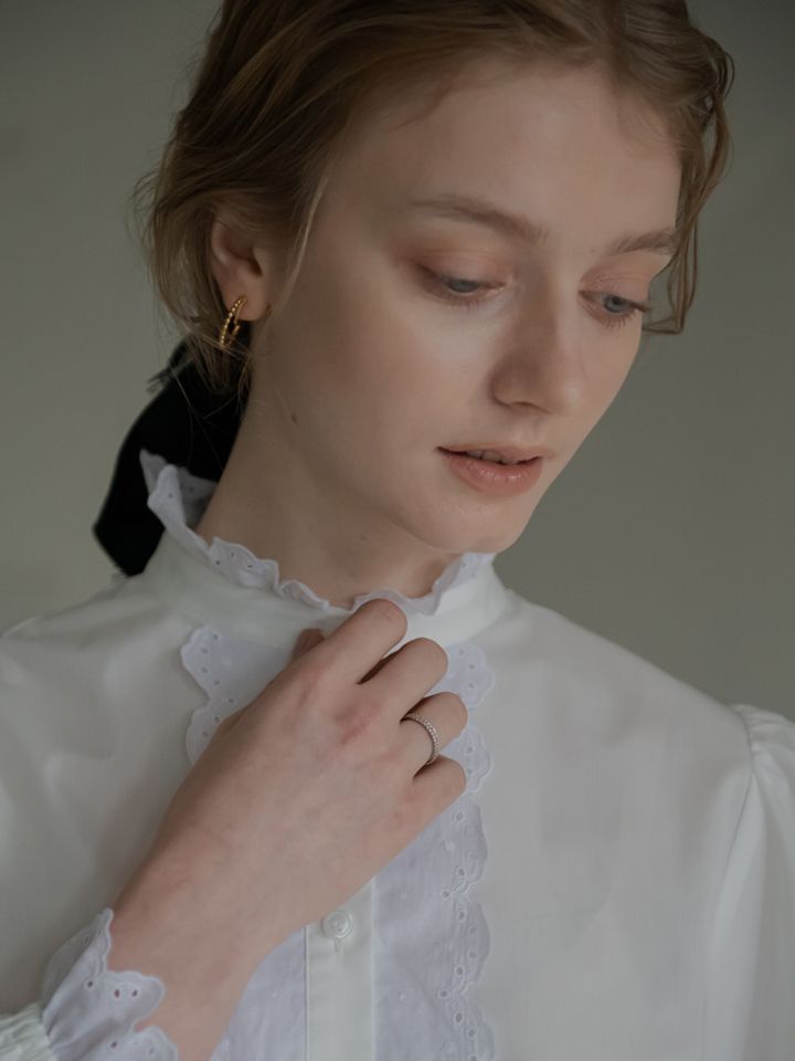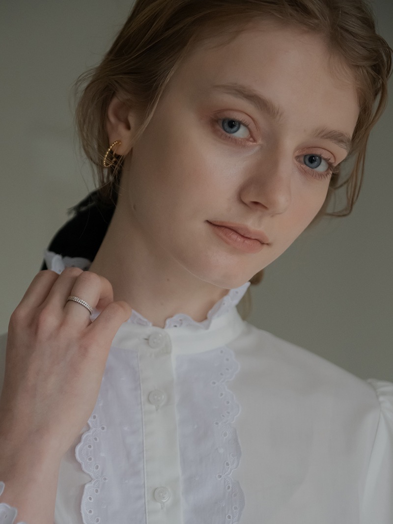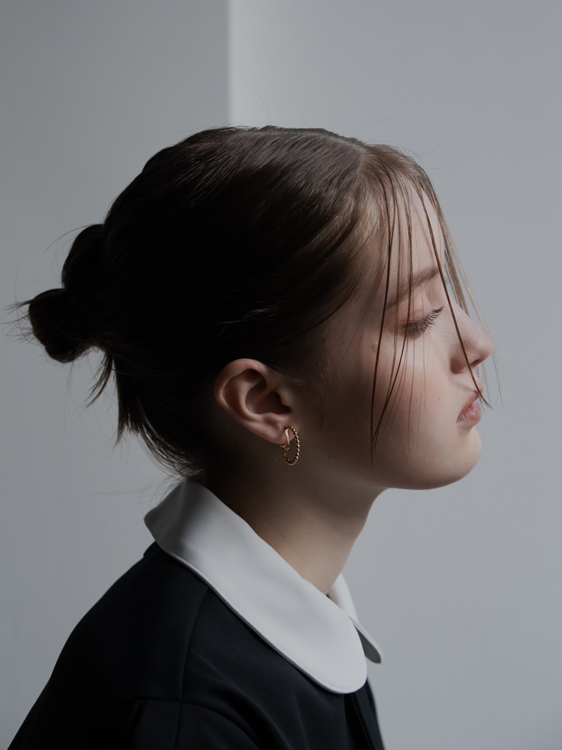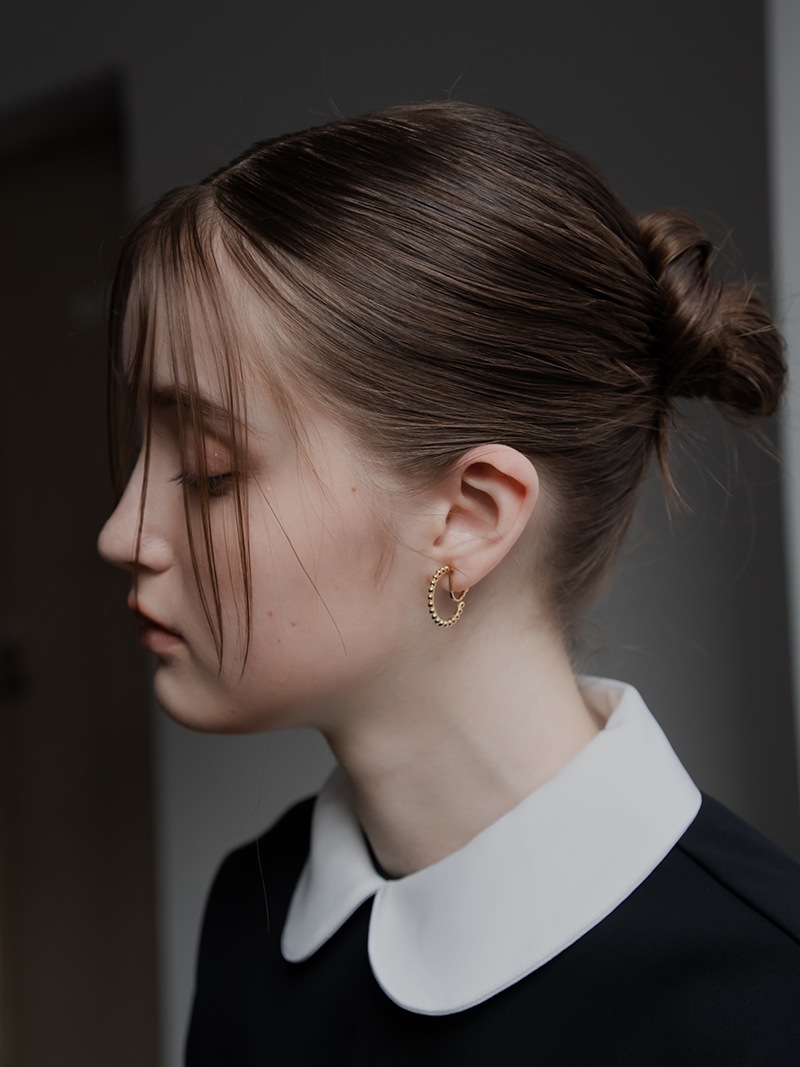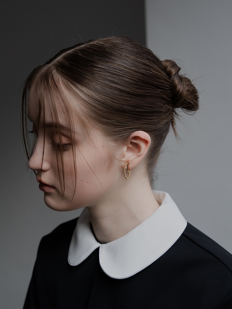 ドットをイメージした小さな丸玉がフープ状に連なったシンプルでありながらお上品さもあるイヤリングです。