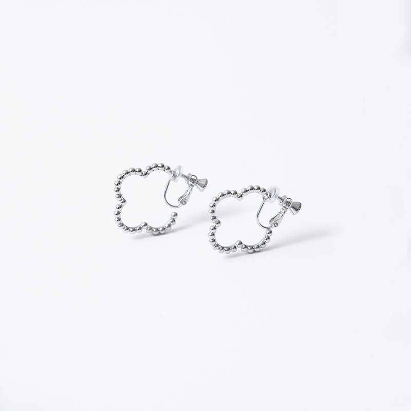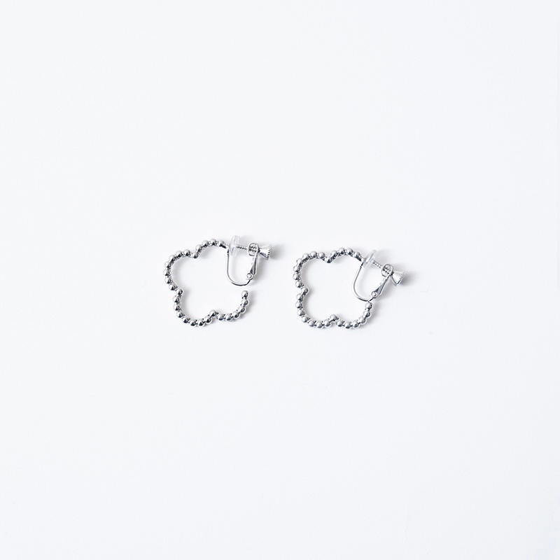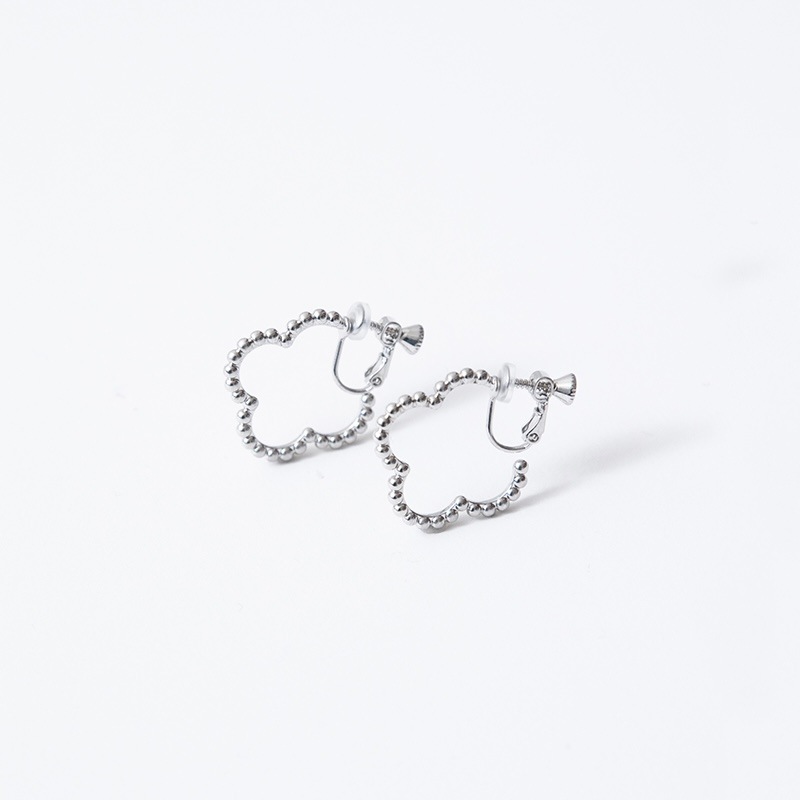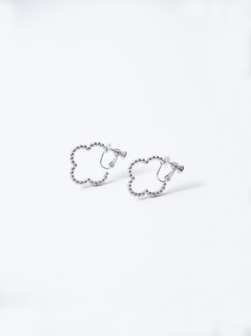 ドットをイメージした小さな丸玉がクローバーモチーフのフープ状に連なったシンプルでありながらお上品さもあるイヤリングです。
