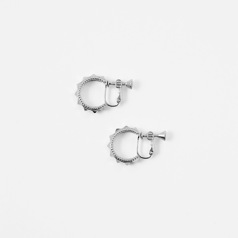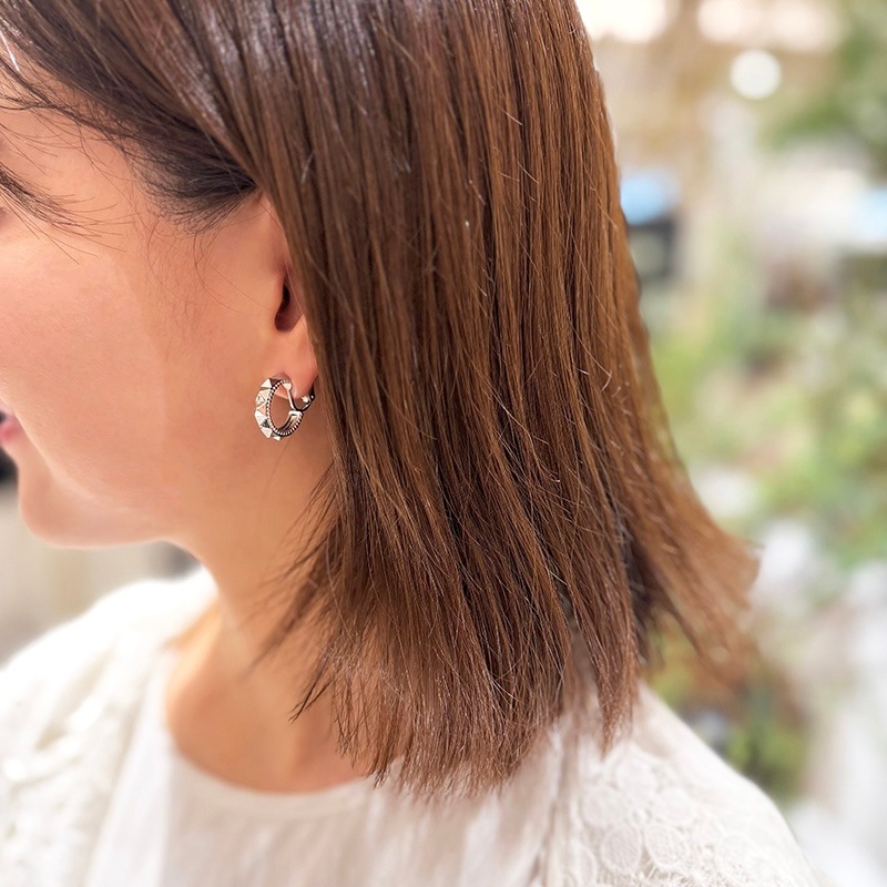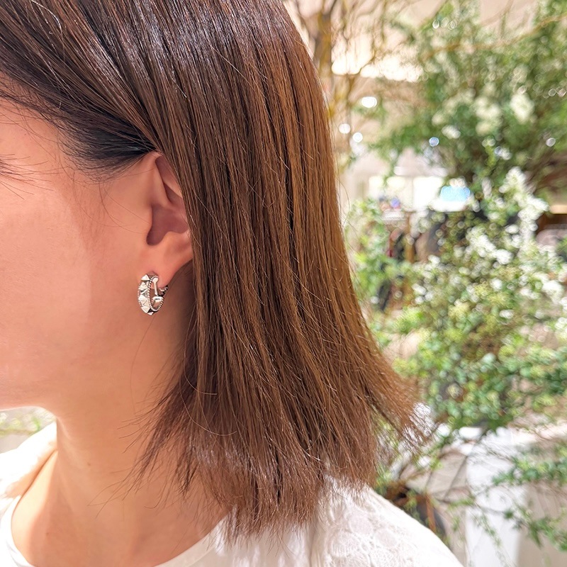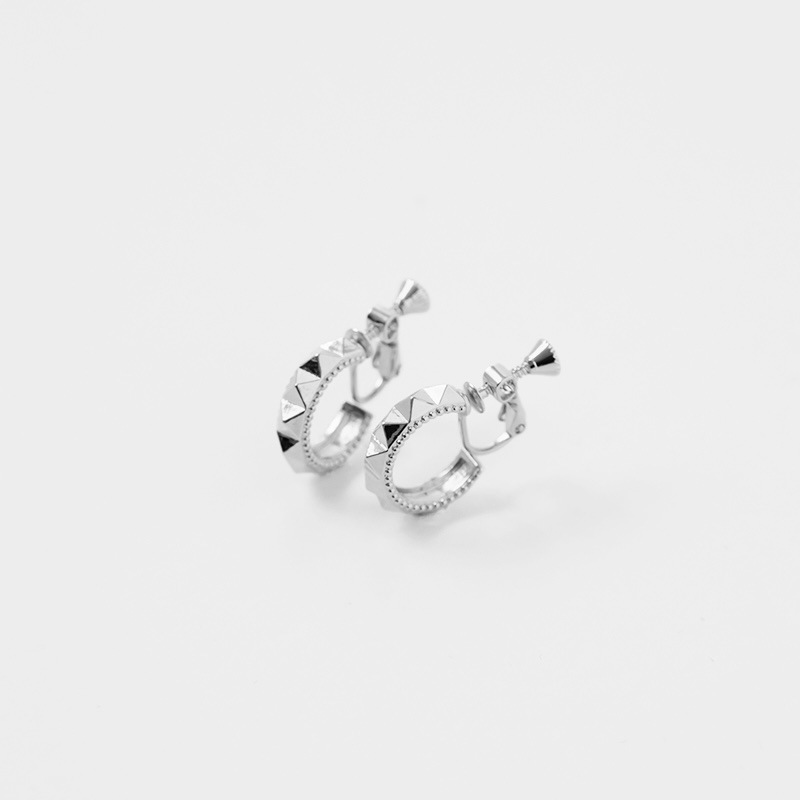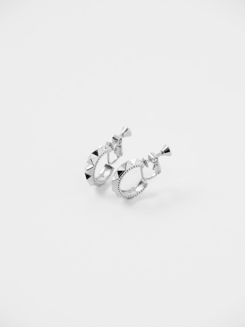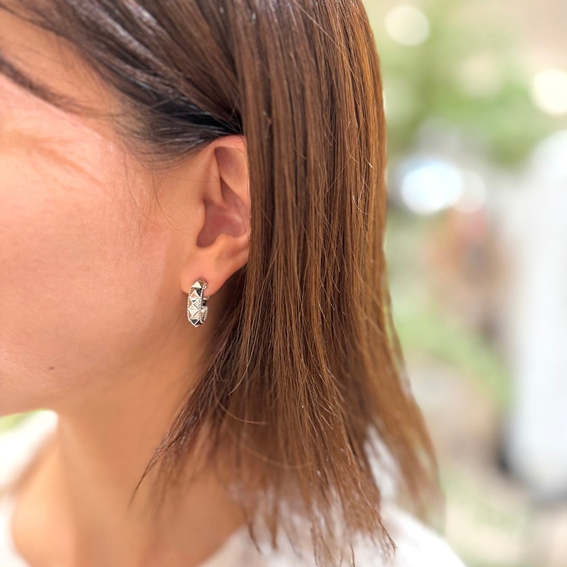 ピラミッド型をフープにあしらったような、エッジの効いたシンプルで存在感のあるイヤリングです。