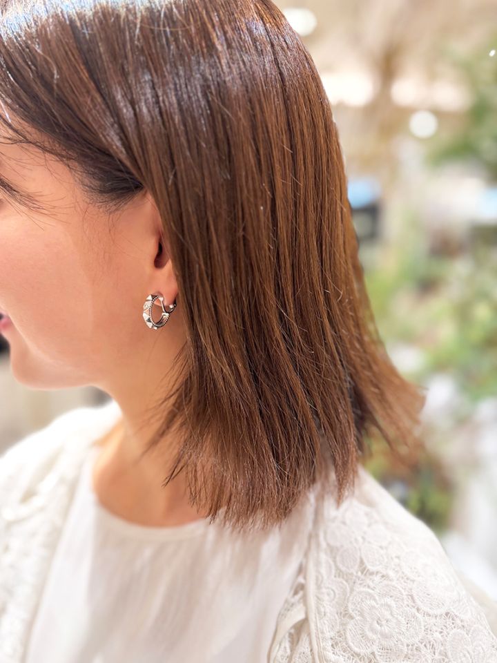 小ぶりながらも存在感がありコーディネートのポイントとしてお召しいただけます。